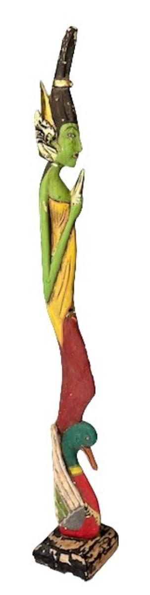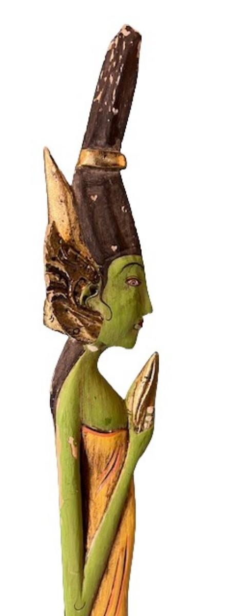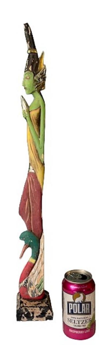 Carved wood. Age related wear. Measurement: 24"H x 3"W.