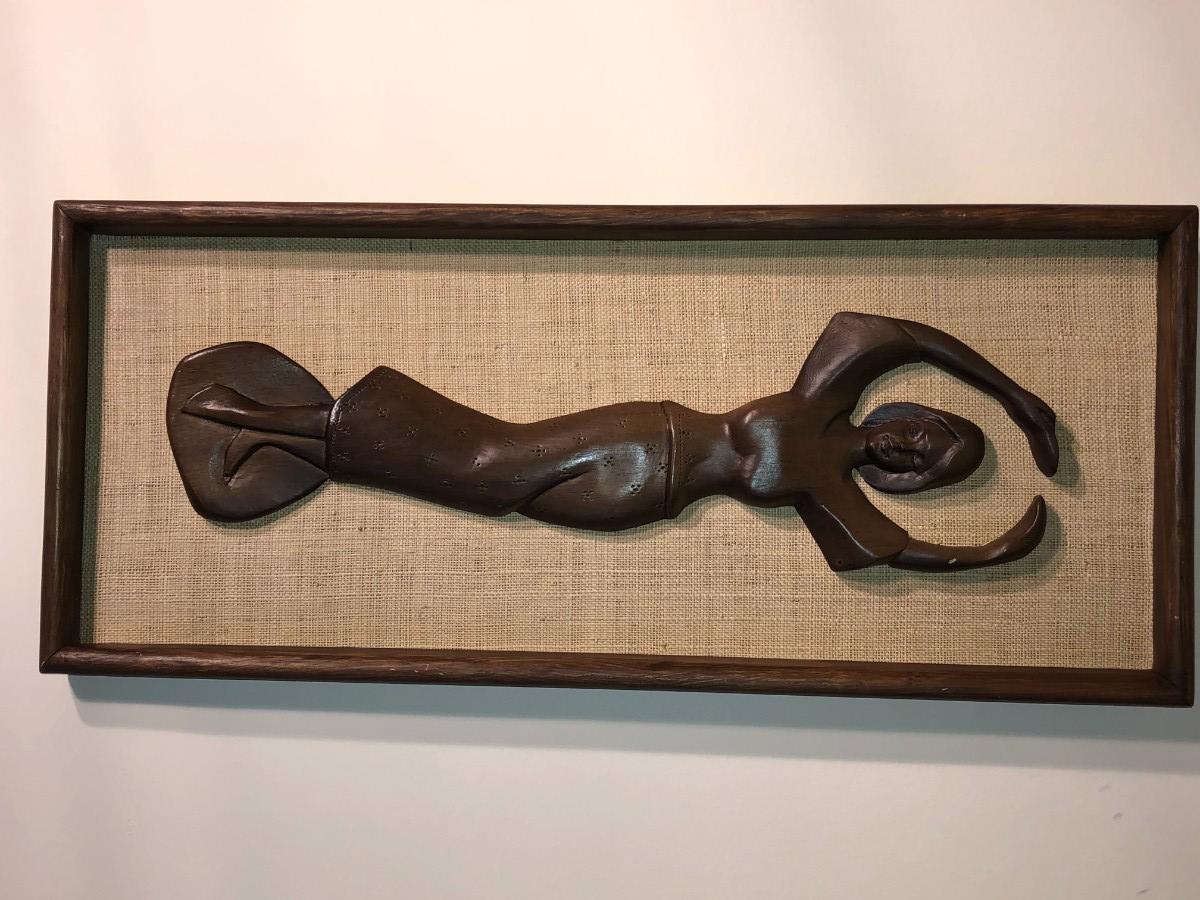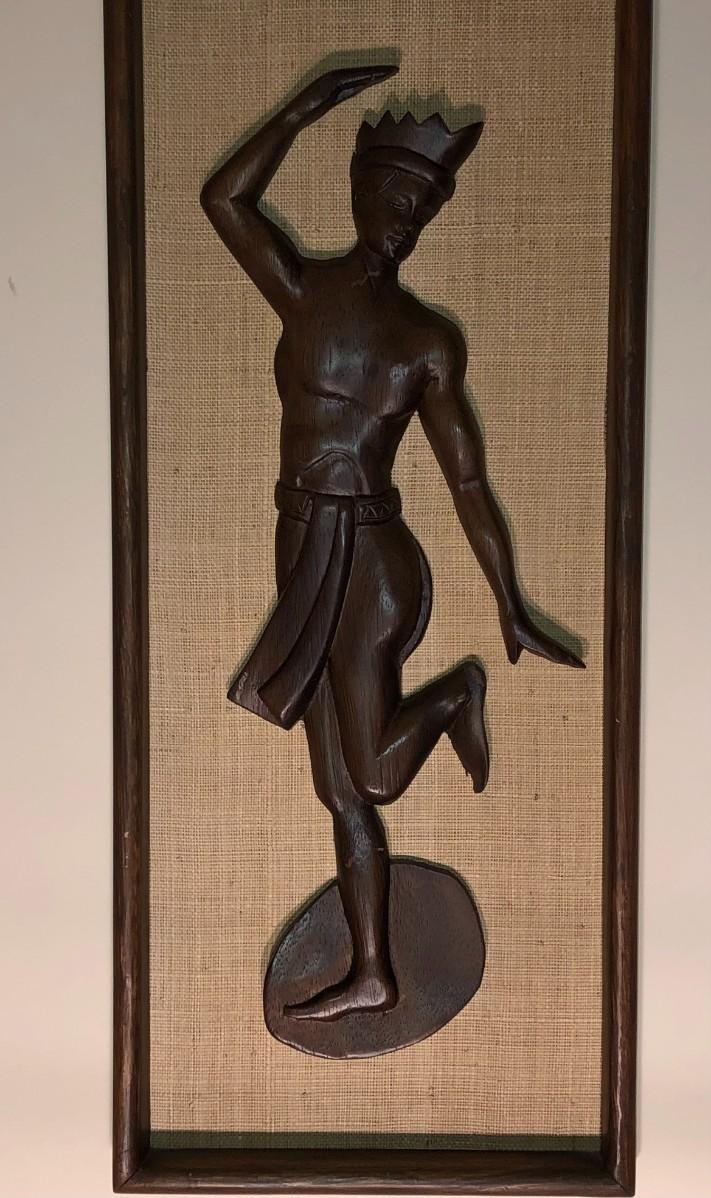 Two smaller framed original carvings of Dancing Man and Dancing Woman