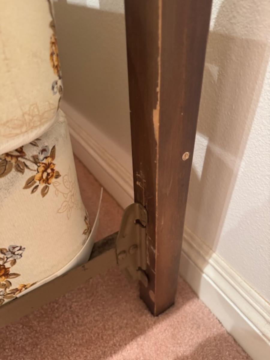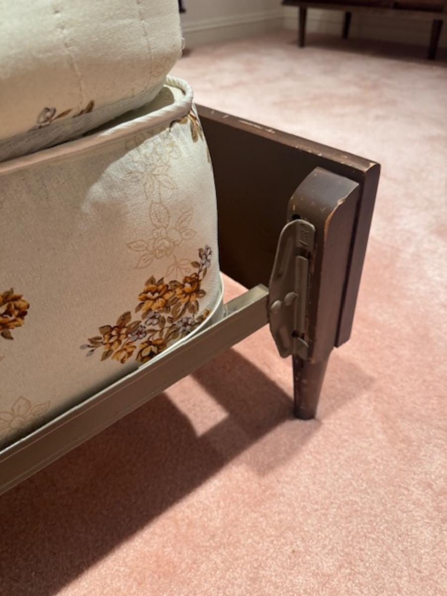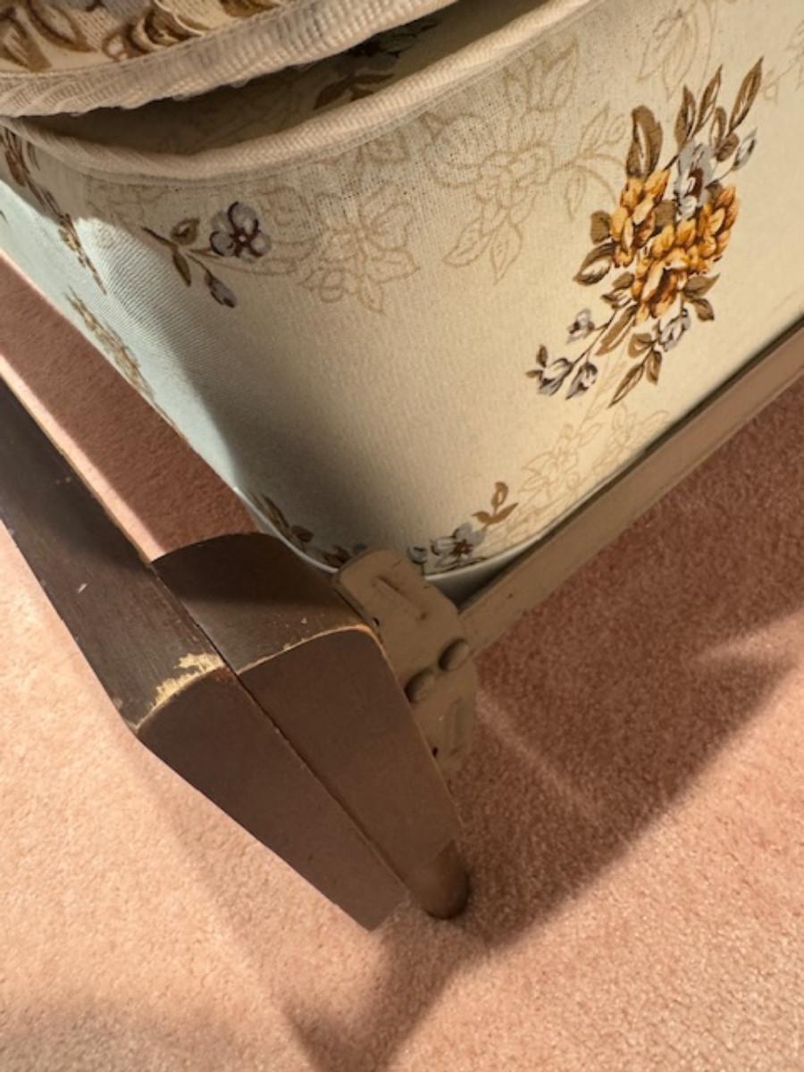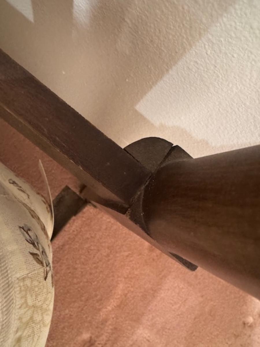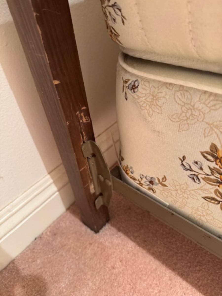 bed frame is as is condition many scratches and right side of head board is slightly coming apart - see pictures