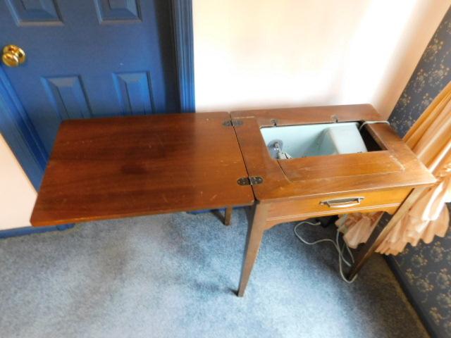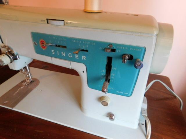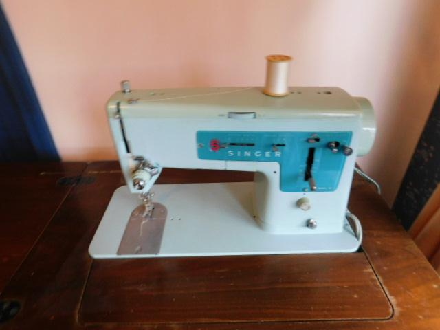 Mid-Century Blue Singer Sewing Machine and Cabinet