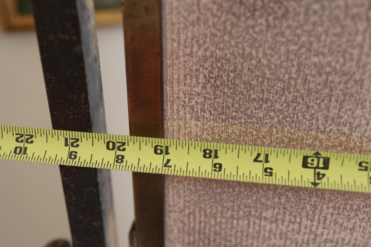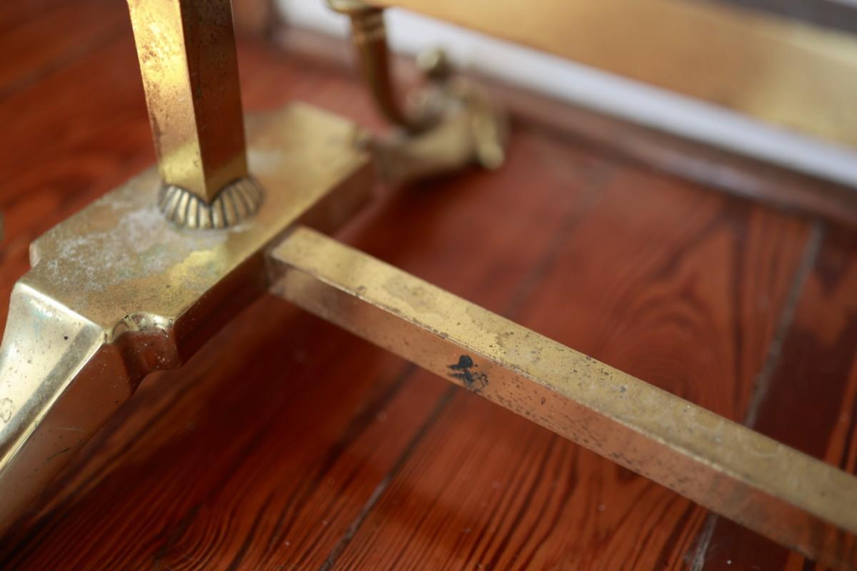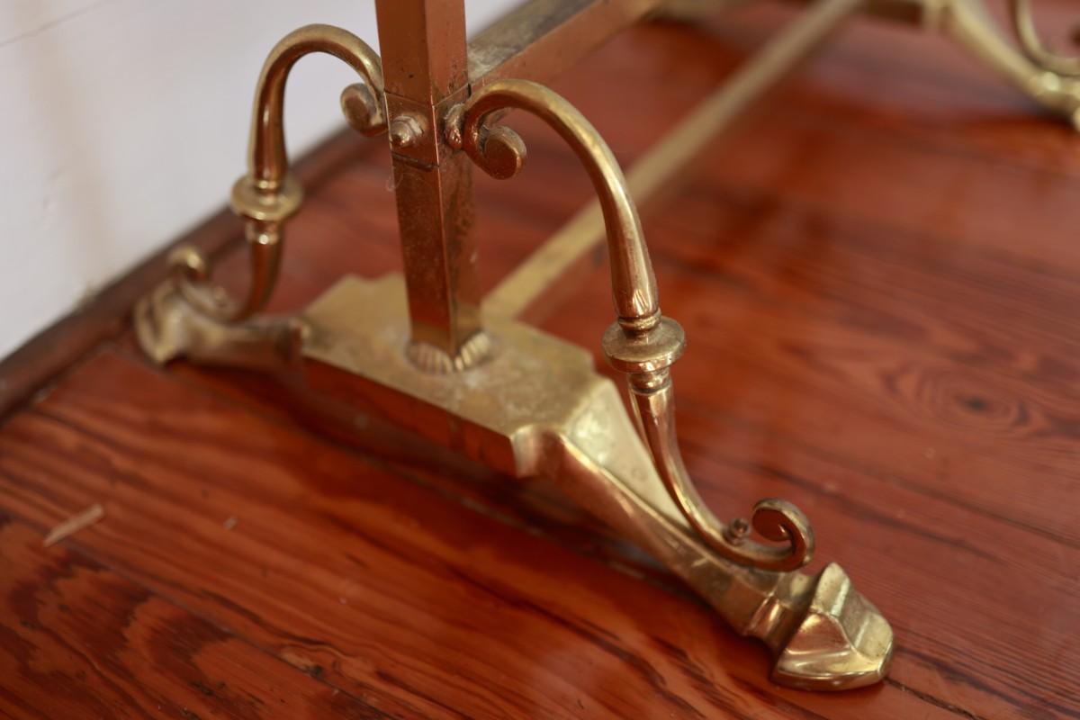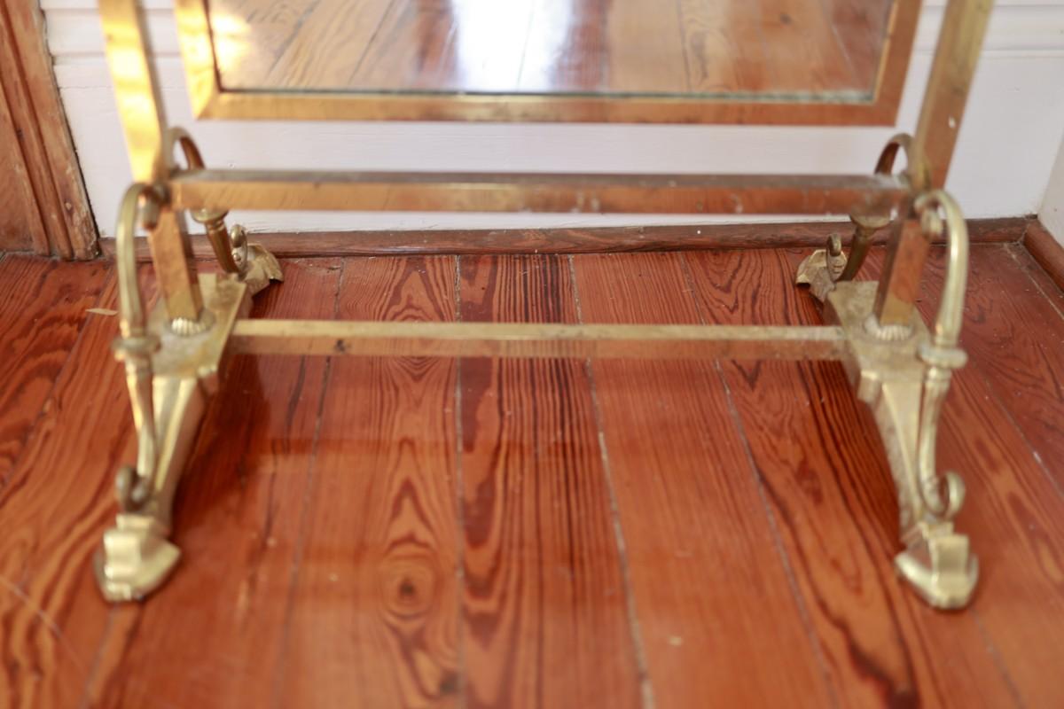 Glass can slide out of the top to safely transport. Please see detailed photos for condition of brass frame.