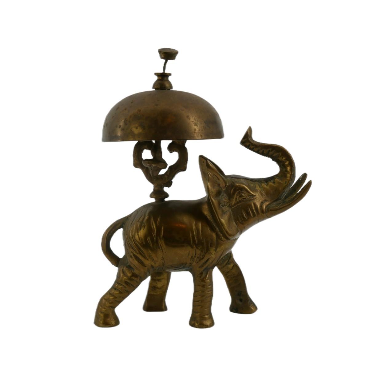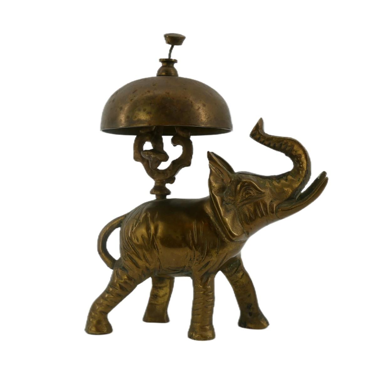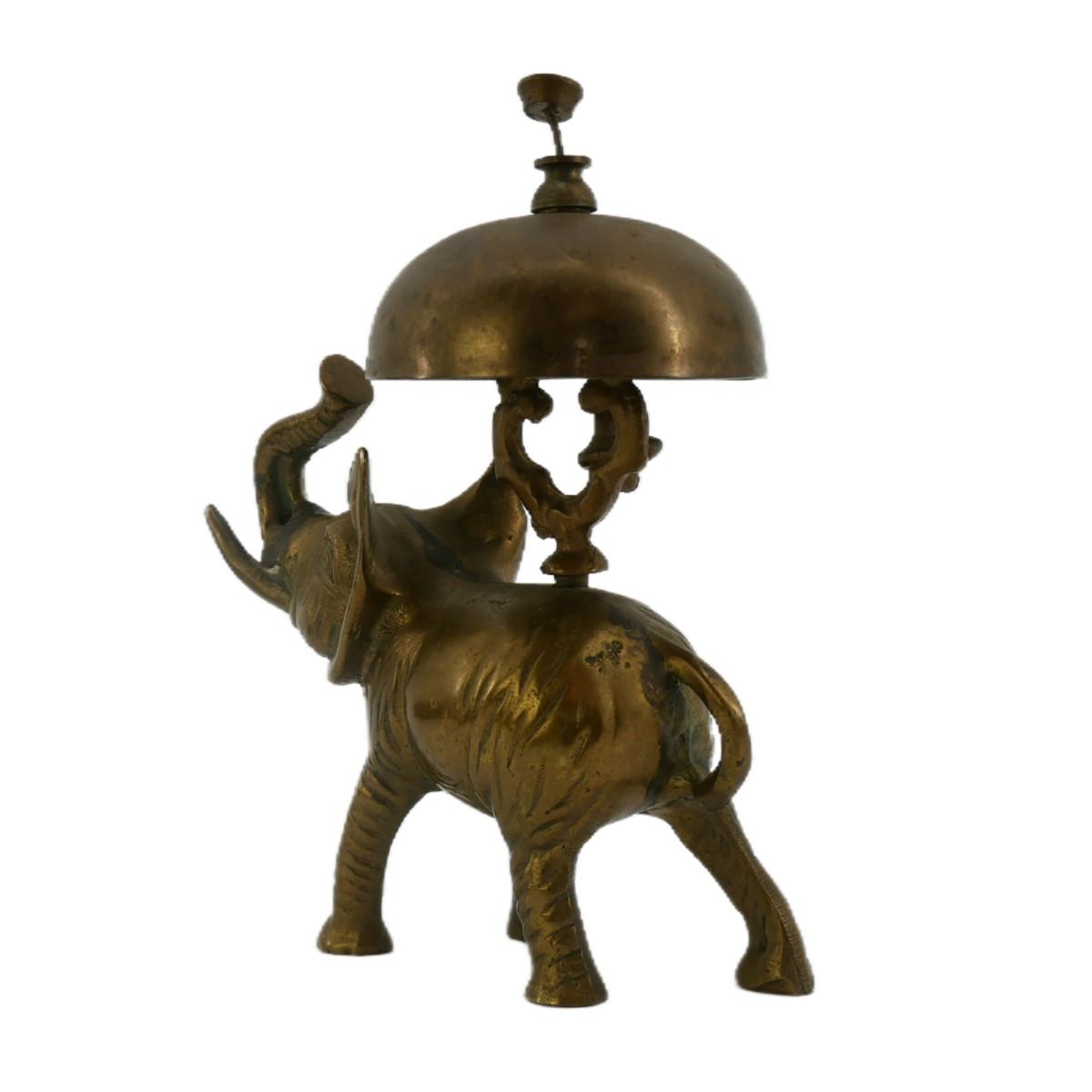 Vintage, mid-century (possibly 1940s-1950s) brass elephant concierge bell that was probably featured at a hotel desk at some point. Very charming piece and bell rings perfectly! Measures 5" x 2" x 6.5", weighs 1 lb 3 oz.
