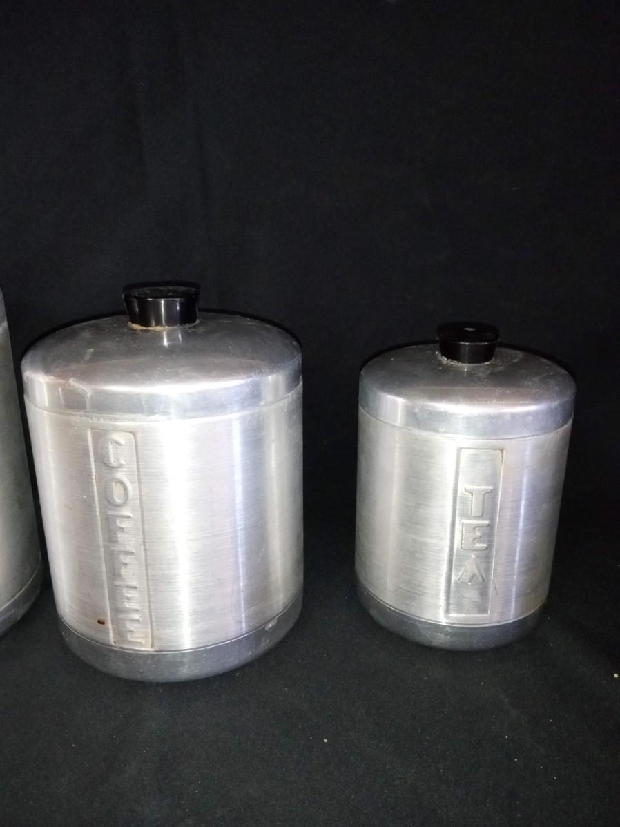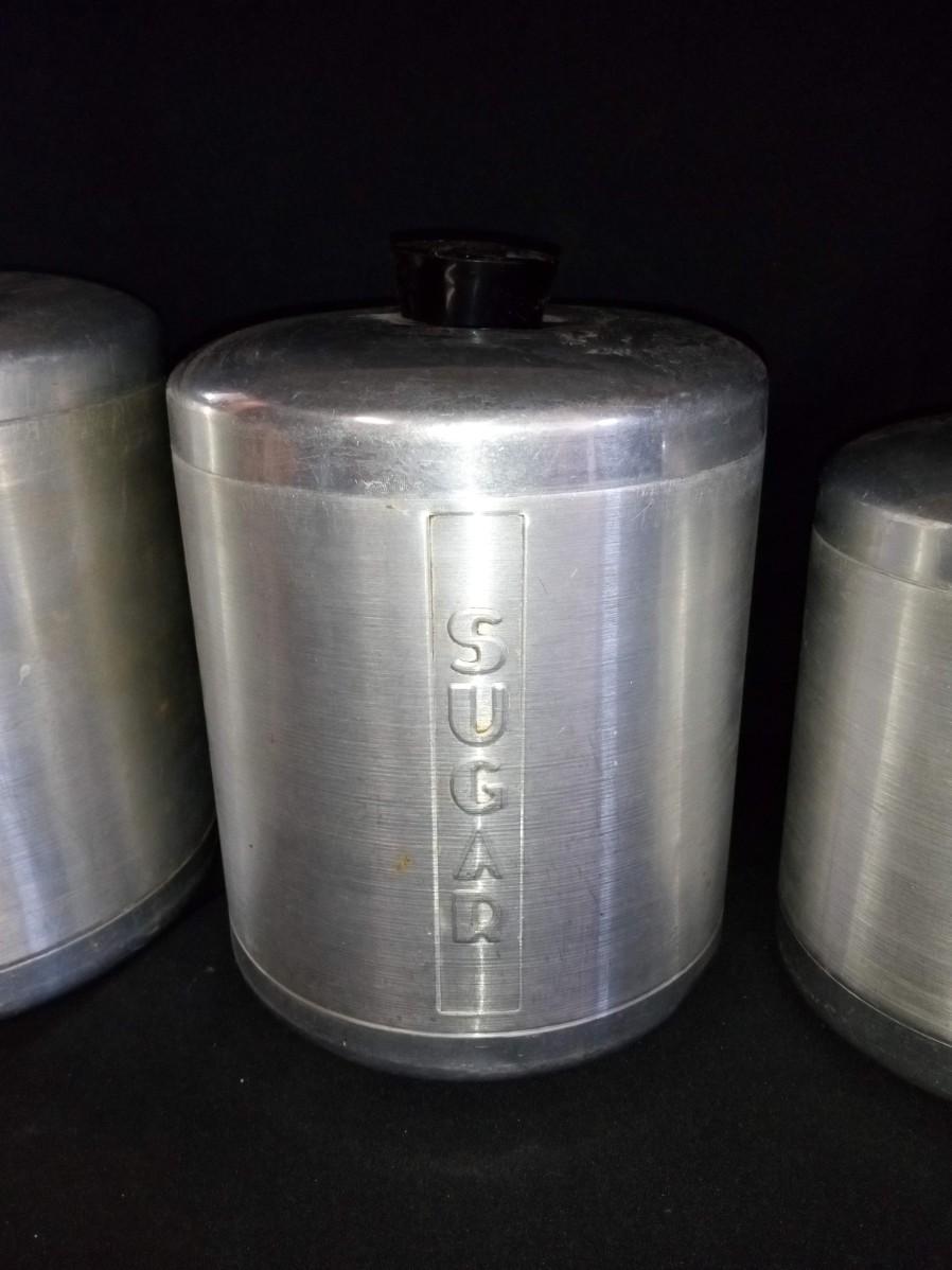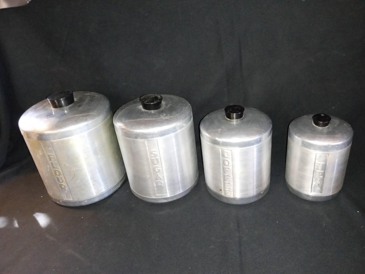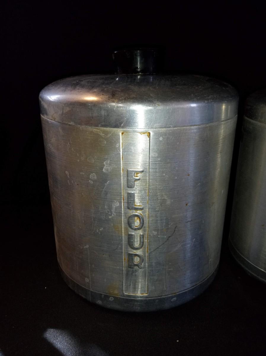 MID-CENTURY CANISTERS, SPICE CONTAINERS AND WOODEN ROLLING PIN