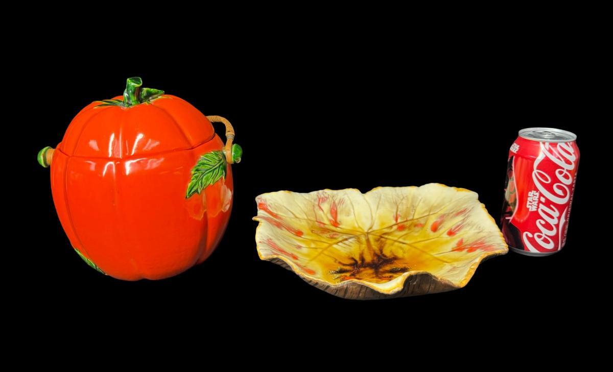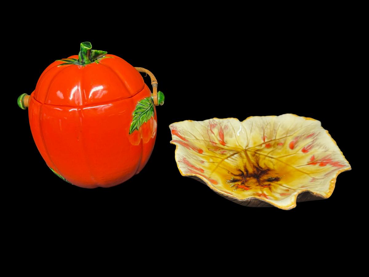 Includes a Maruhon (Japan) cookie jar, and a Treasure Craft maple leaf server. Age related wear. Measurement of widest: 10.5”. Pre-auction estimate: $100-$150. [LD]