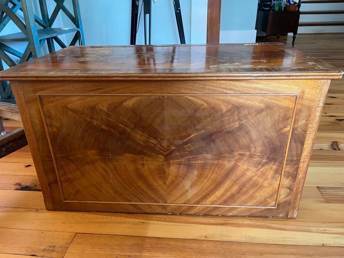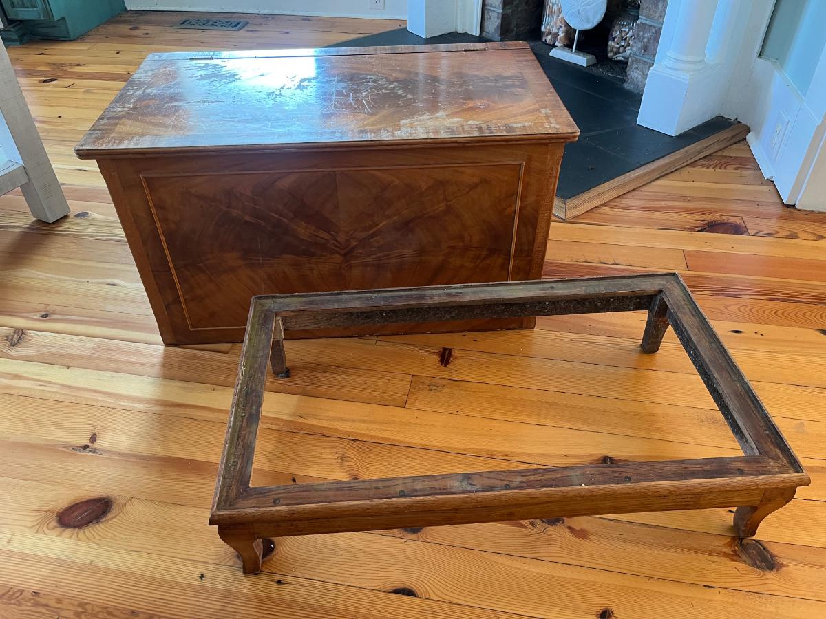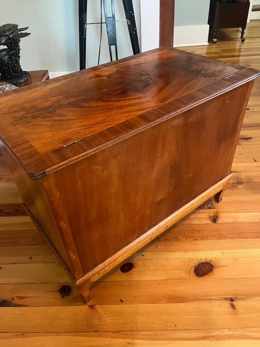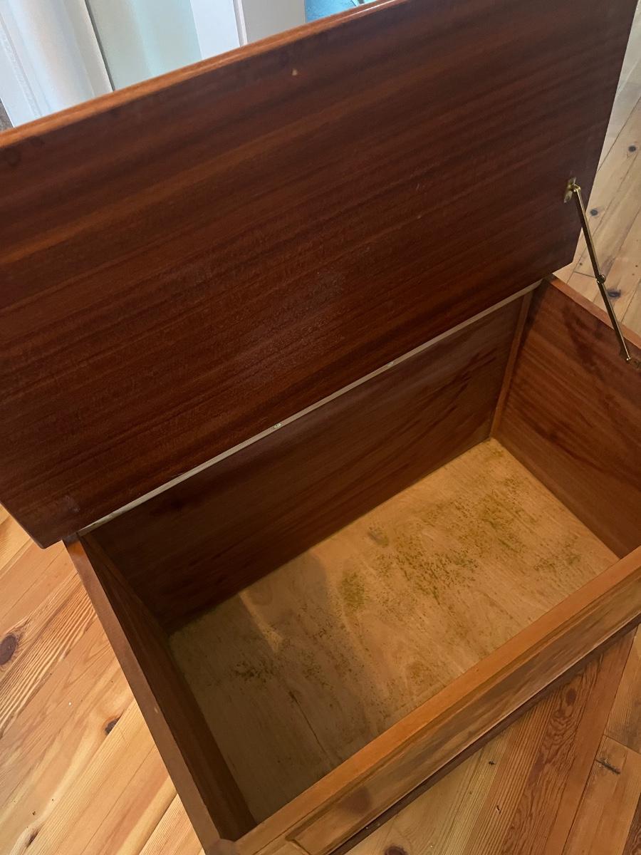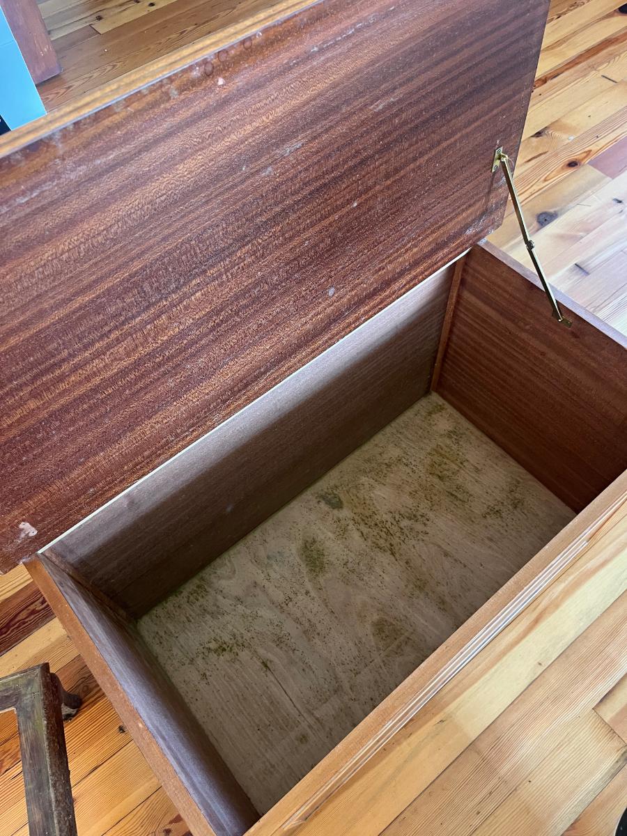 Mid-century chest on open stand; approx. 25.5" x 32.5" x 18"