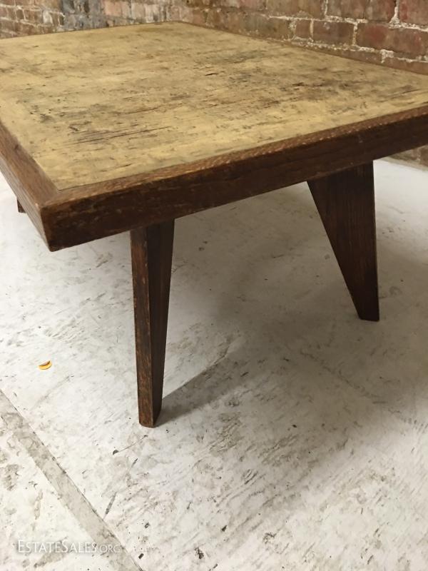 Oak mid-century styled tapered leg coffee table. Sold as-is solid but the finish is rough. Measures 36" long, 23" wide and 15" tall.