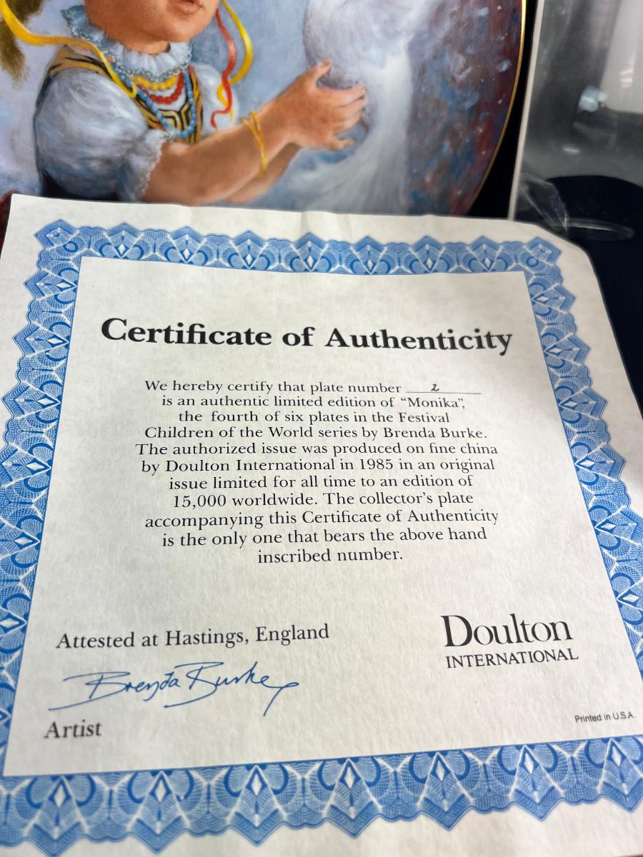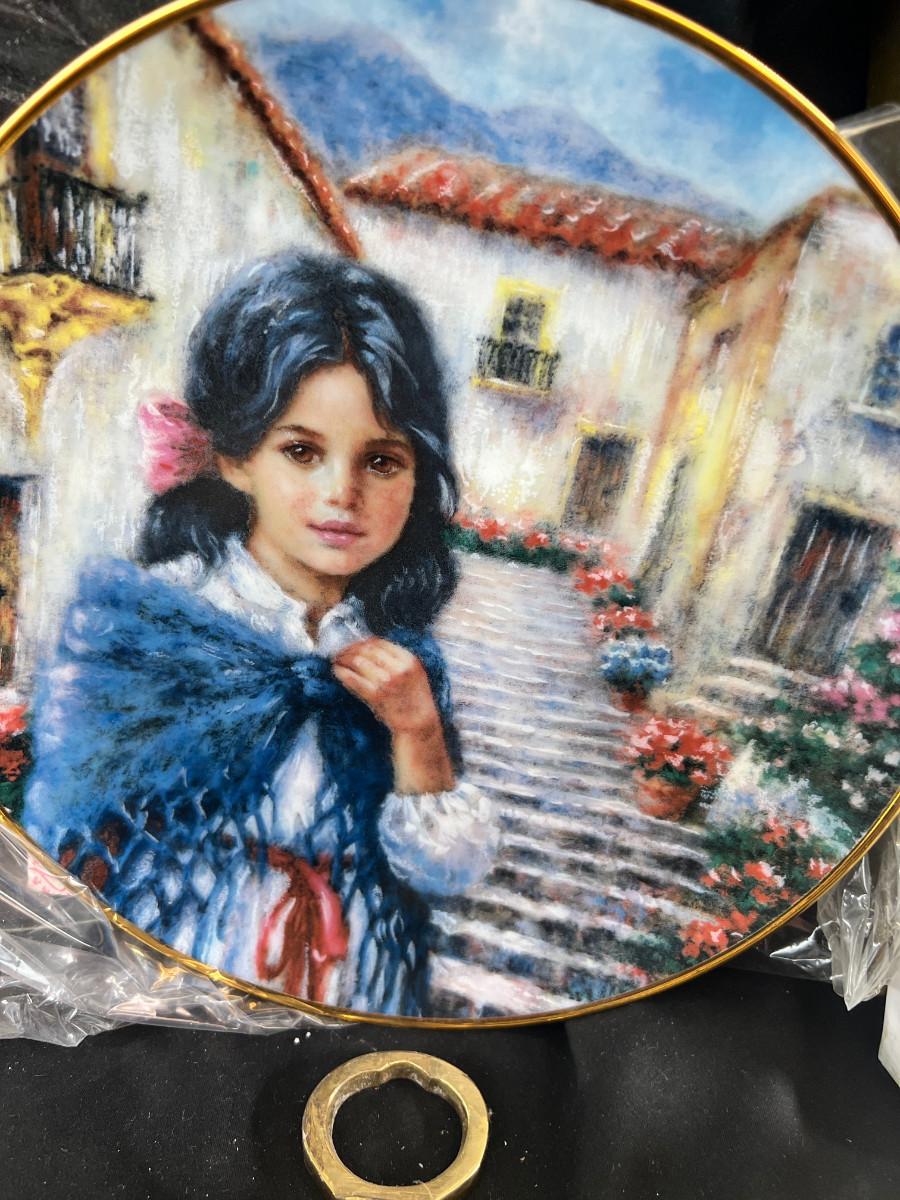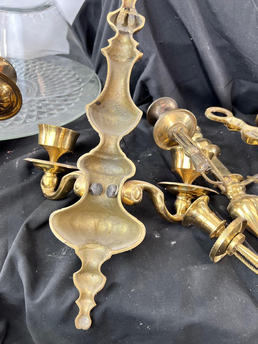 Decorative Plates from the "Children of the World" series with COA and boxes. MCM cast brass wall sconces with glass candle holders. Hobnail fruit bowl with plate. Resin round tray.. 1 Large clear glass Fruit bowl , Beta fish bowl.