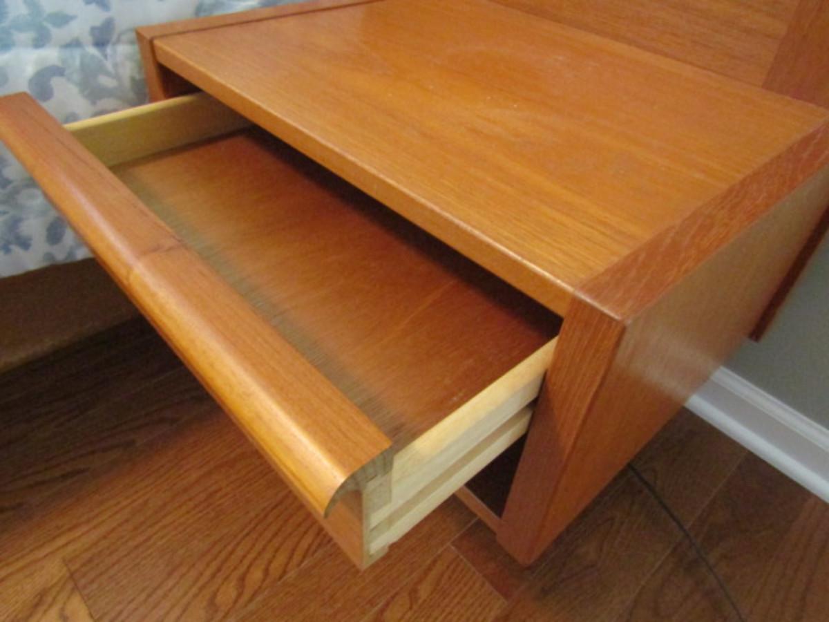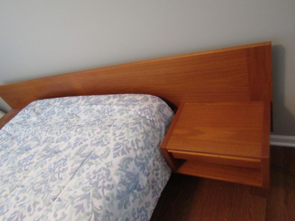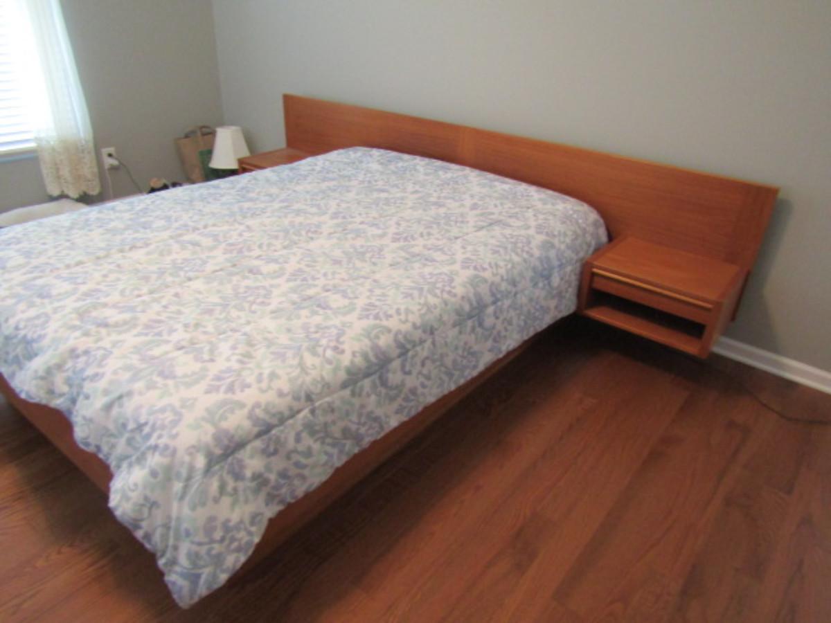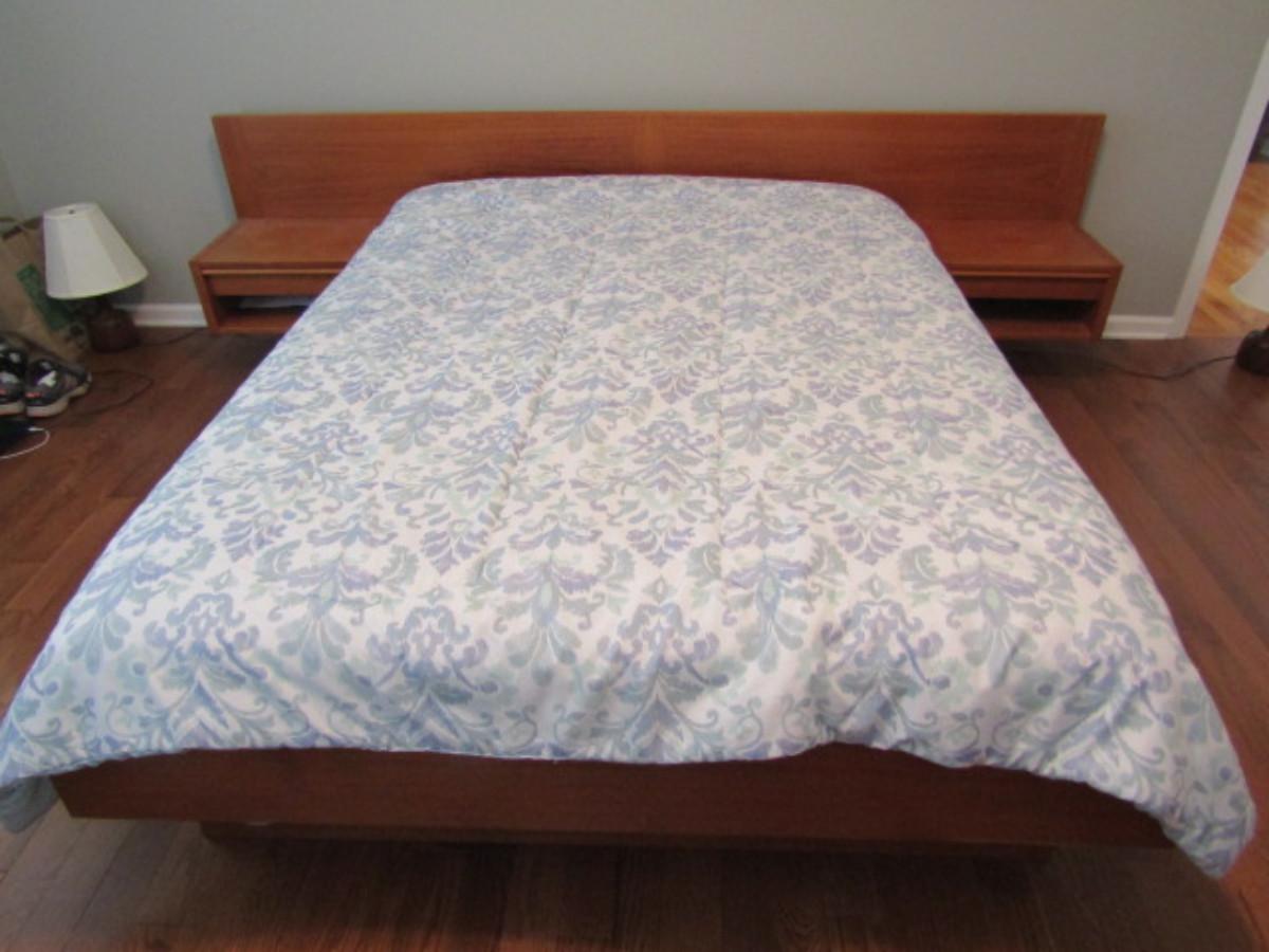 Mid-Century Design Queen Size Bed with Double Cabinet Headboard