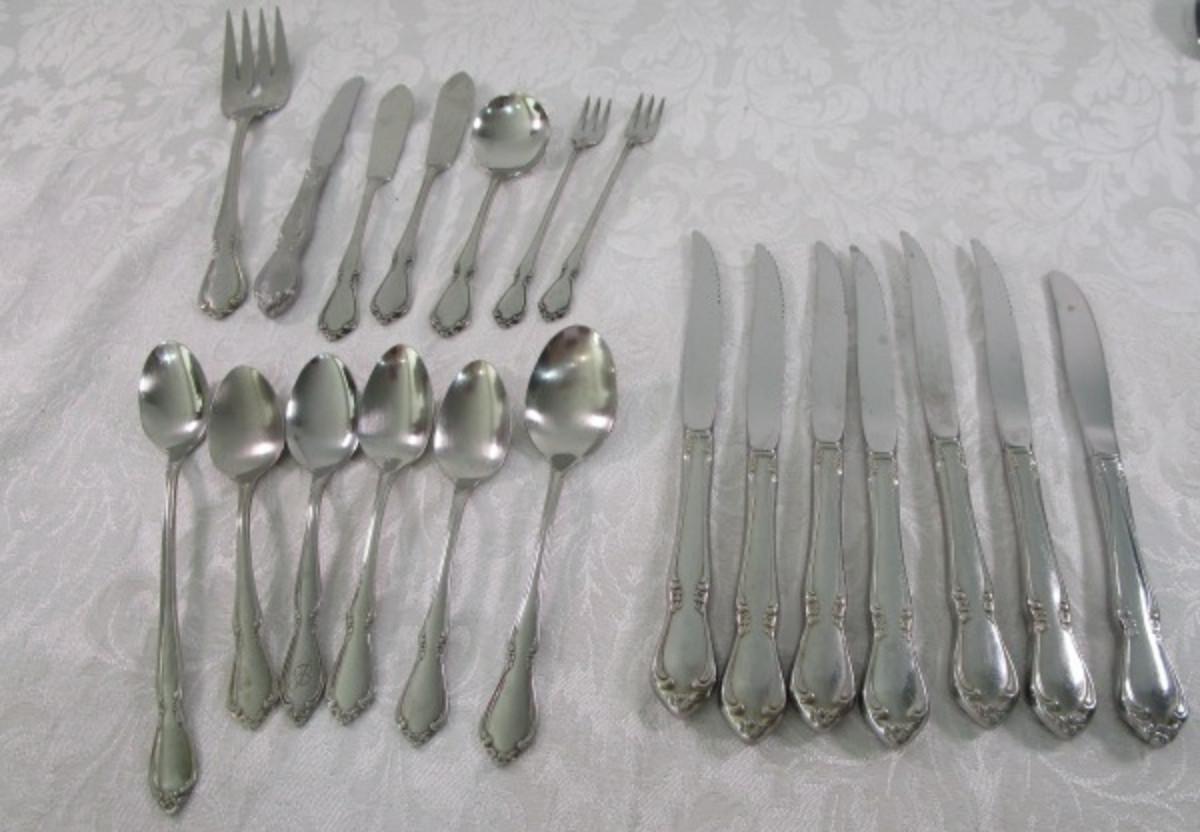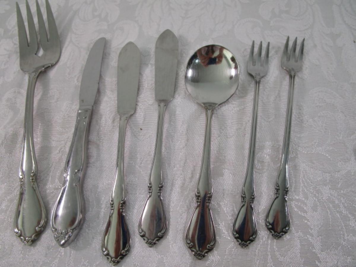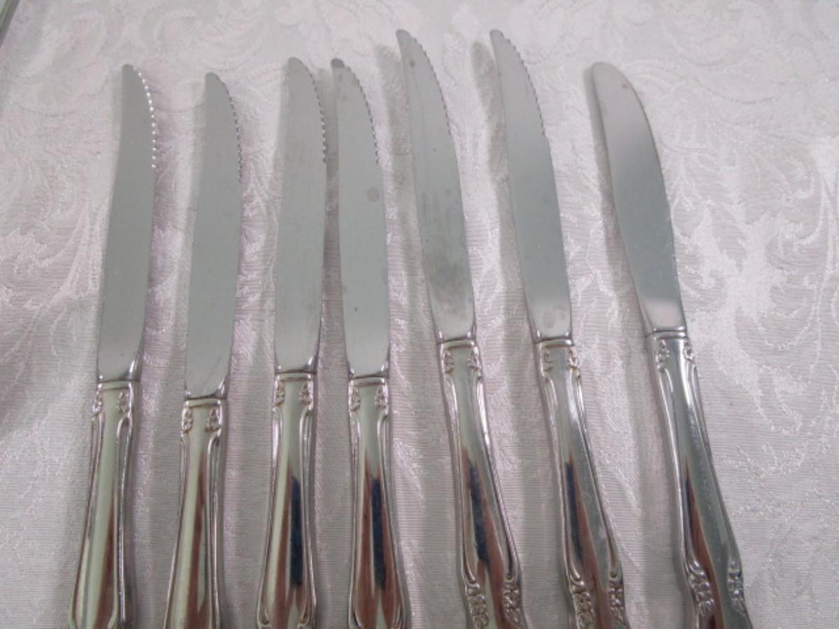See pictures, 6 of the knives are steak knives, 1 condiment knife, no forks