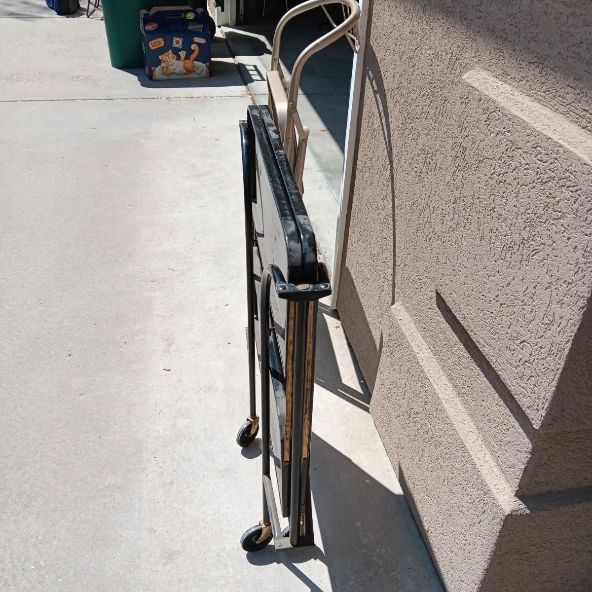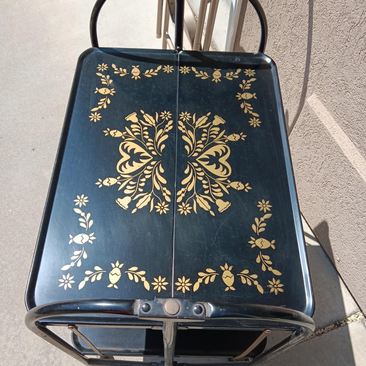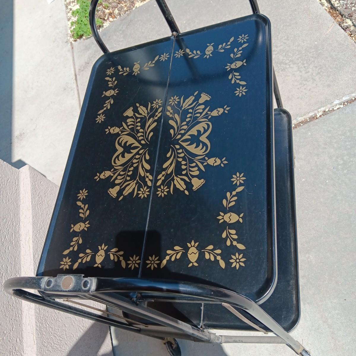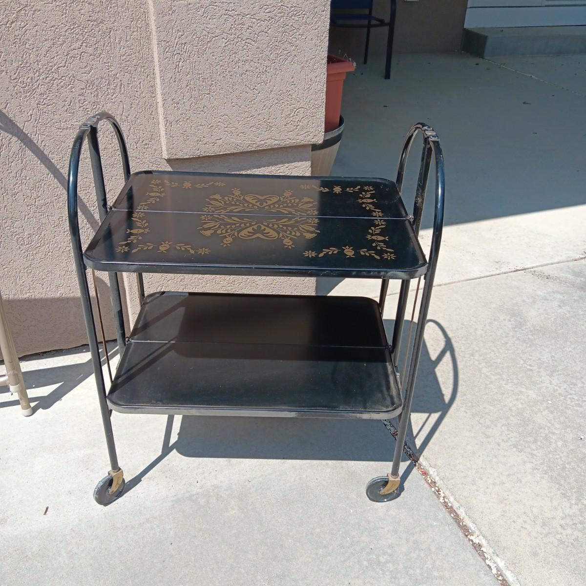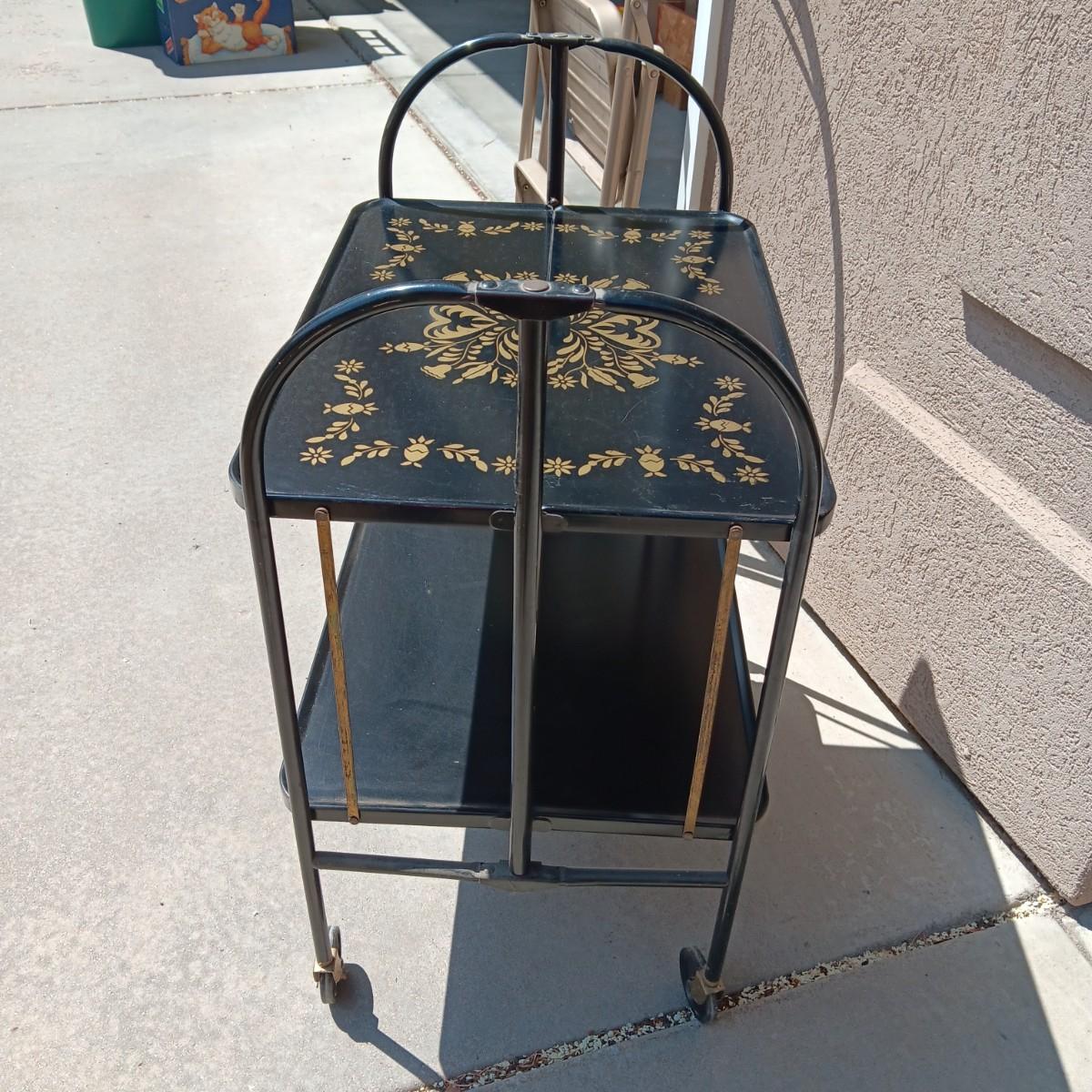 MID-CENTURY FOLDING 2 TIER CART ON CASTERS AND A FOLDING STEP STOOL