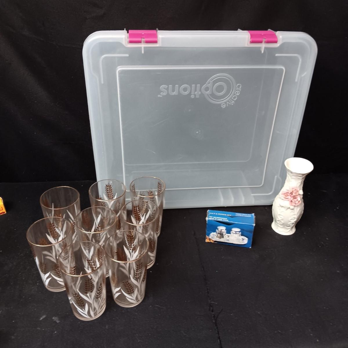 MID-CENTURY GLASSES, STORAGE CONTAINER AND MORE
