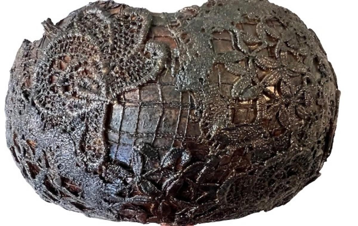Decorated. Two pieces. Measurement of largest: 10"W.