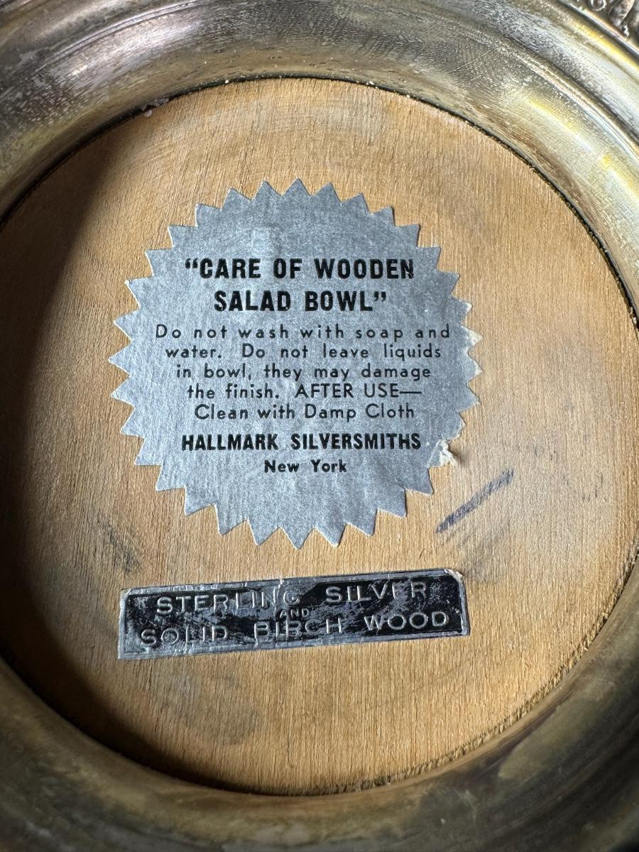 Mid-Century Hallmark Silversmiths Birch Wood Salad Bowl