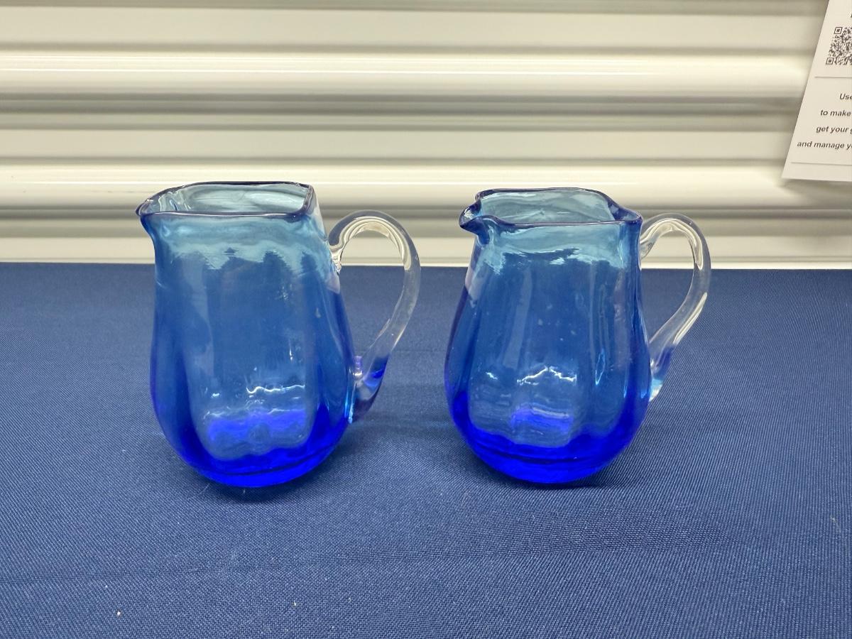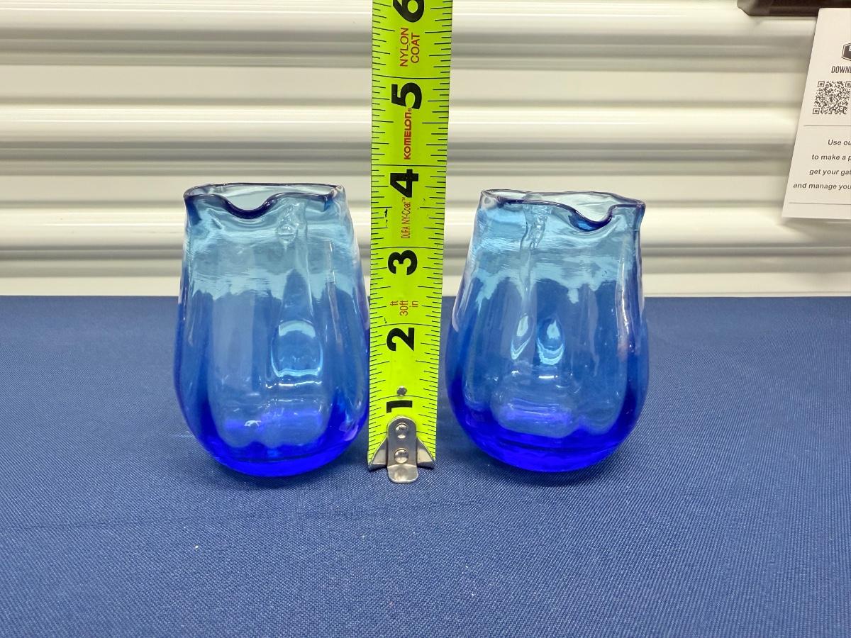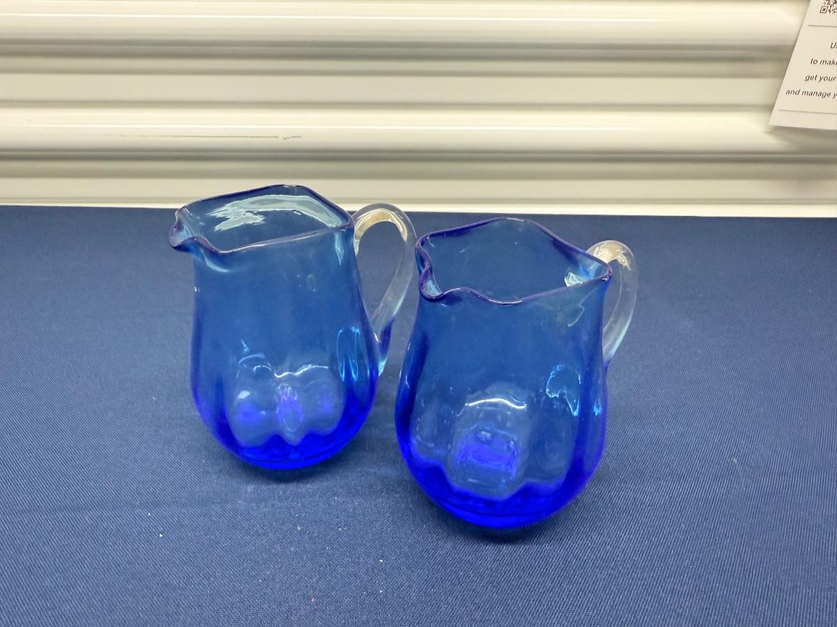 Mid-Century Hand-Blown Cobalt Blue Art Glass Creamers, Murano-Style, c. 1960s”