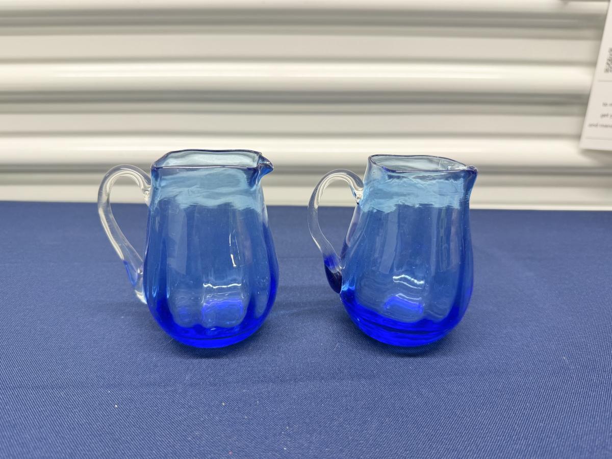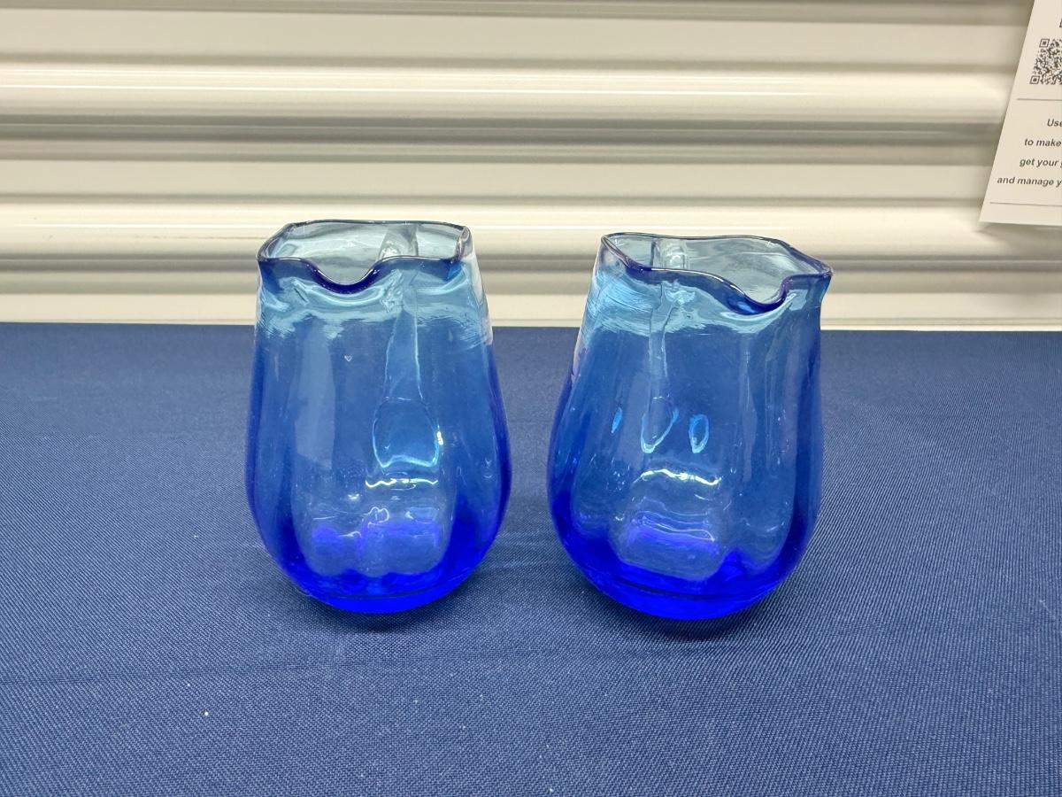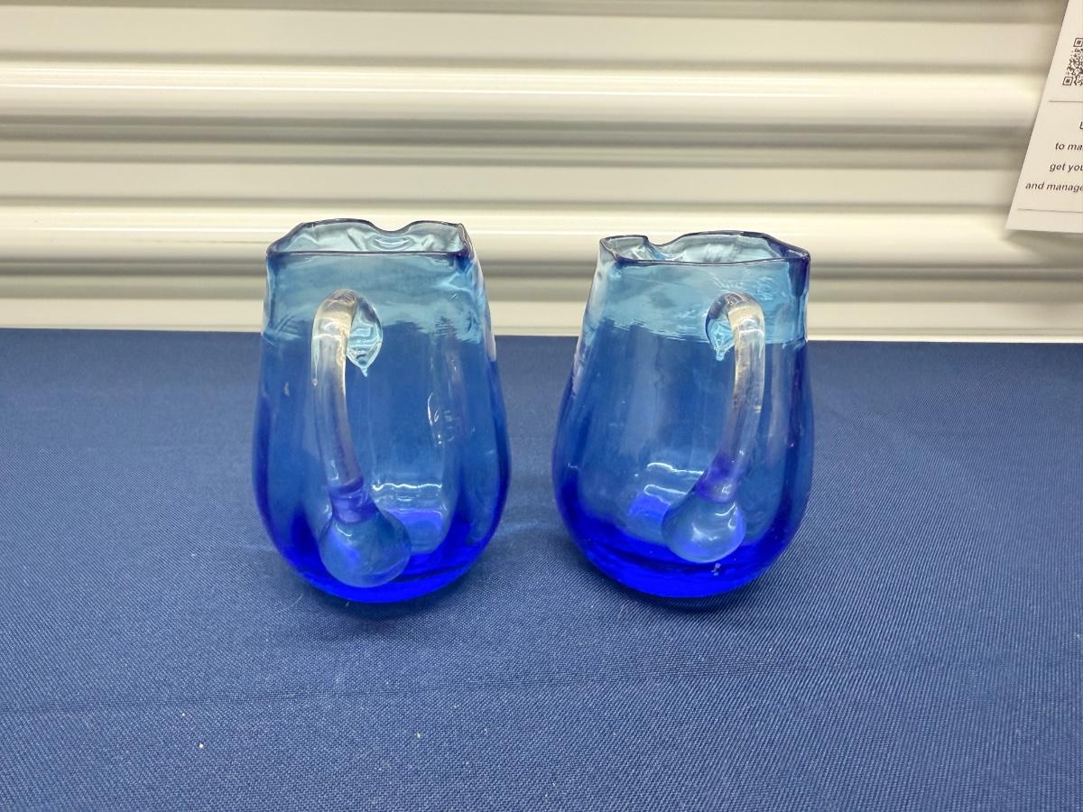 Mid-Century Hand-Blown Cobalt Blue Art Glass Creamers, Murano-Style, c. 1960s”
