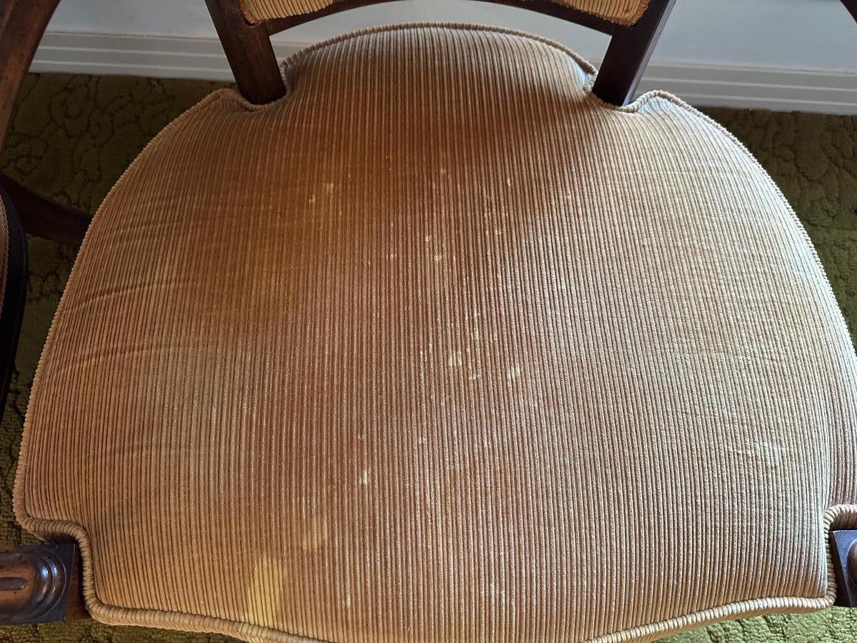 Please see pictures of stain spots on the seat cushions and of any wear.