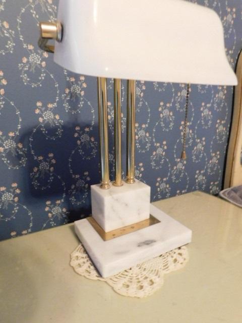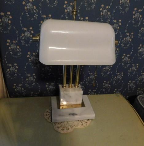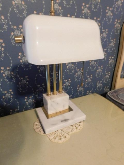 Mid-Century Marble Base Desk Lamp with Opaque Glass Shade