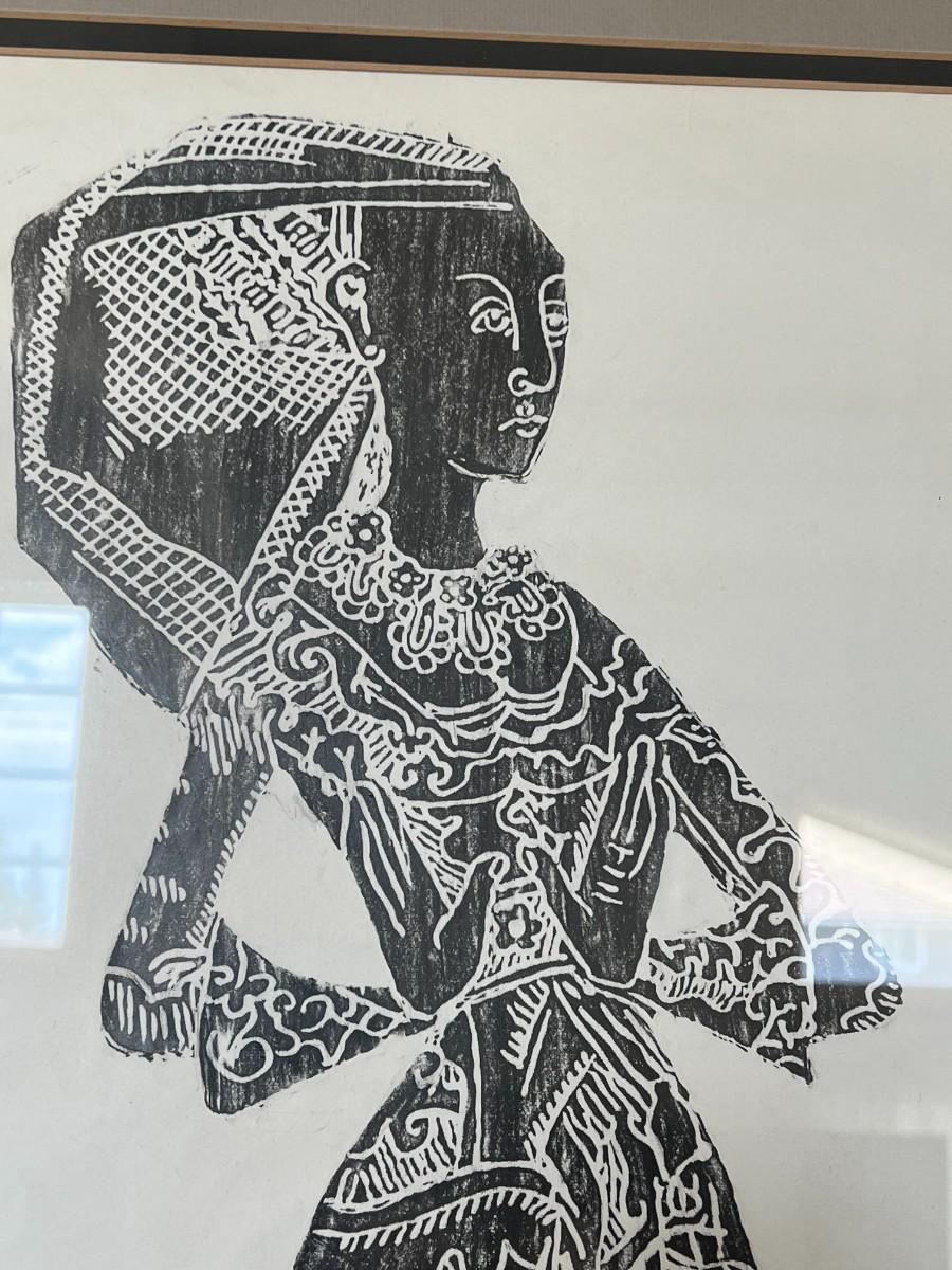 Midcentury Margaret Bennard Peyton "The Lace Lady" Brass Rubbing Lithograph Print