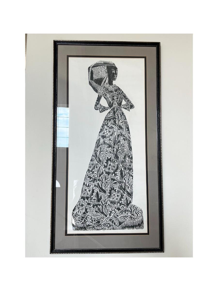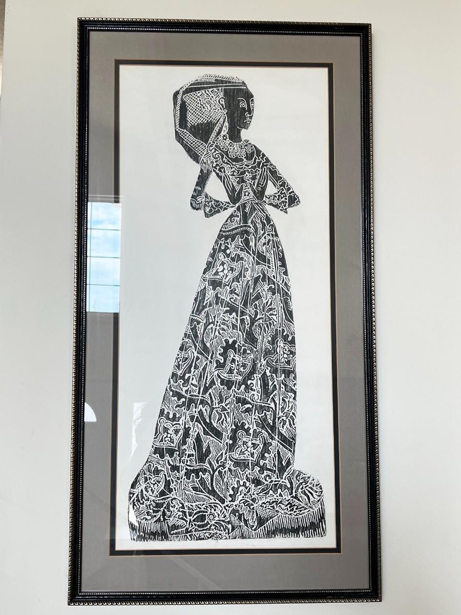 Margaret Bennard Peyton "The Lace Lady" Brass Rubbing Lithograph Print. In good condition. Framed about 39"x20" size.