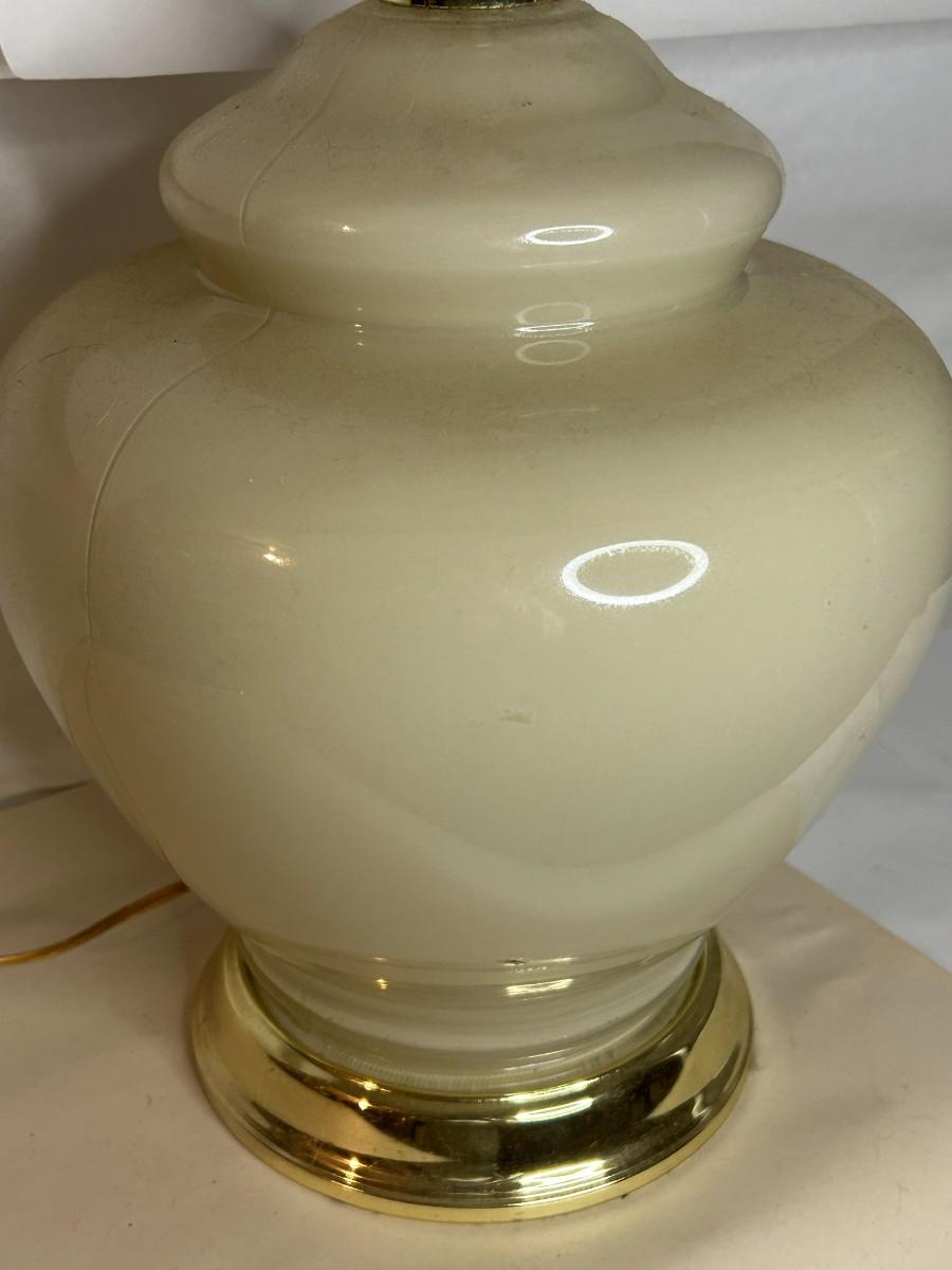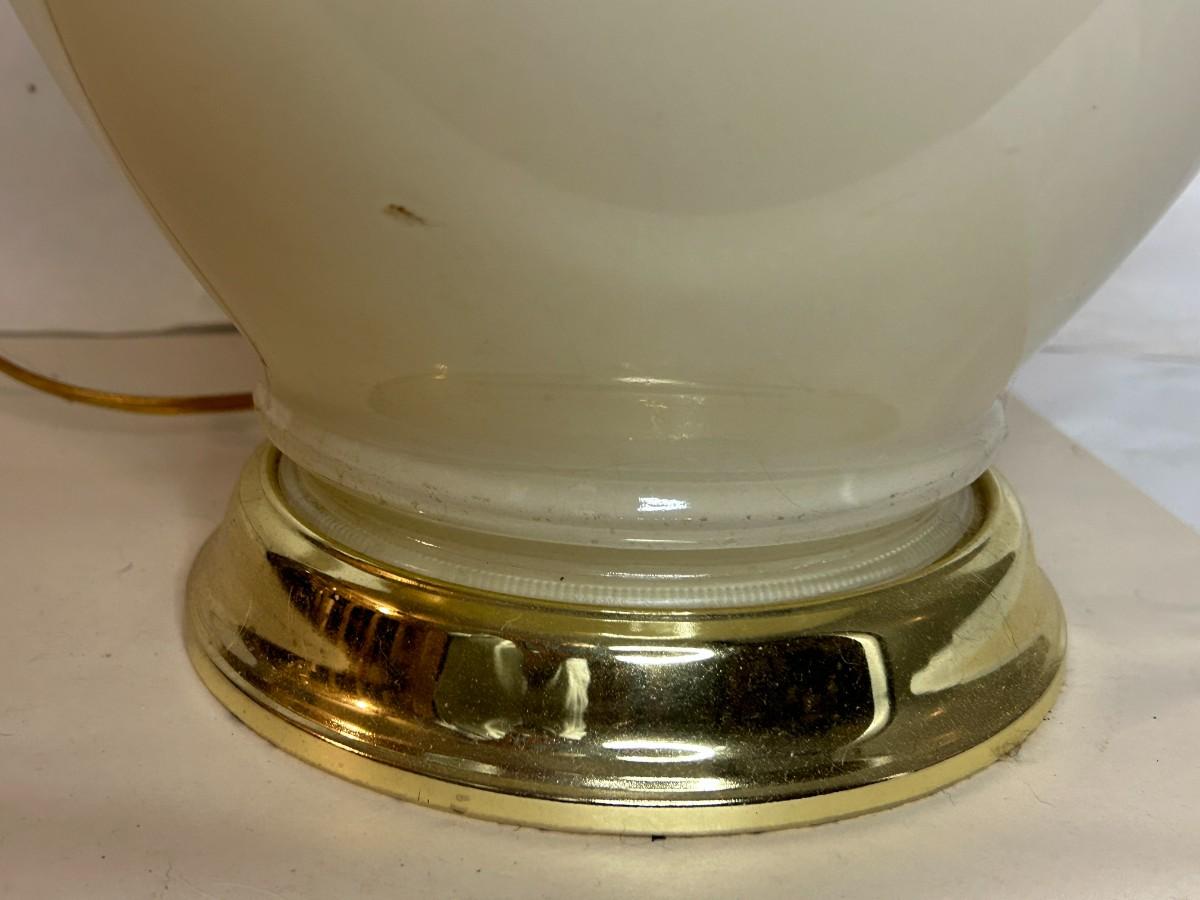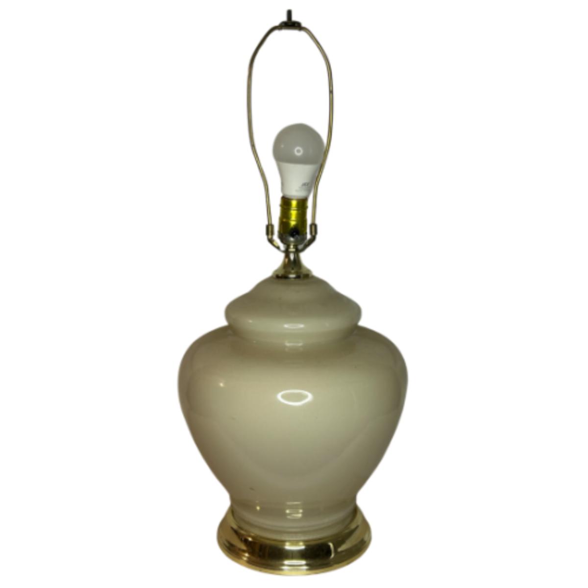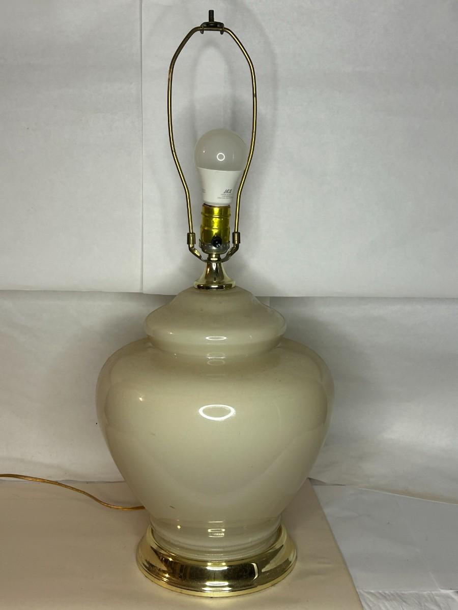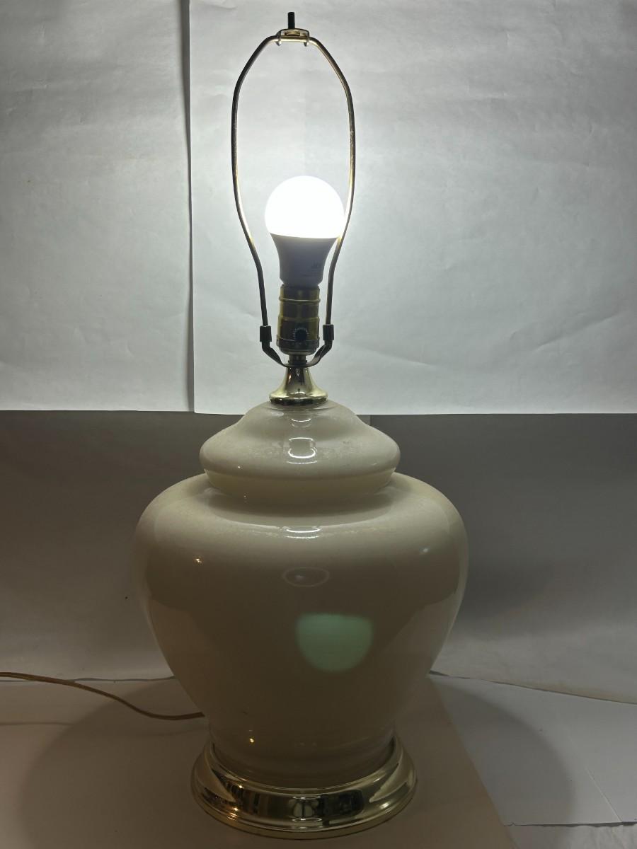 c. 1960s, this lamp included the harp and is in excellent condition. This off-white color is very rich in person.
