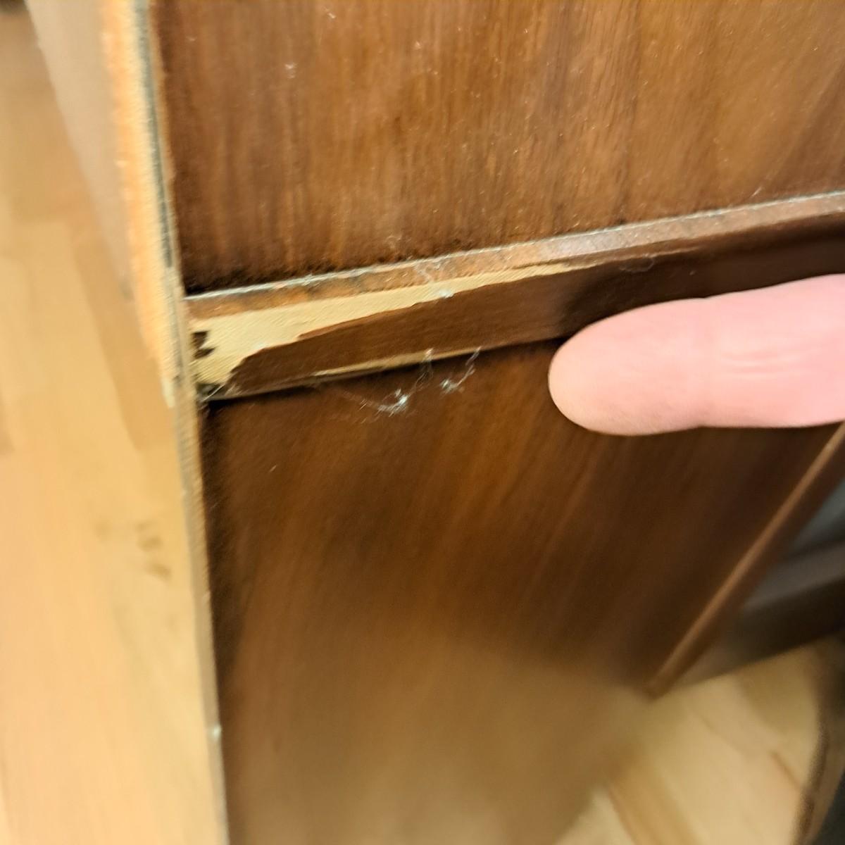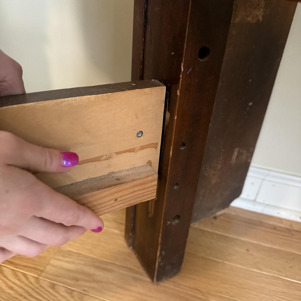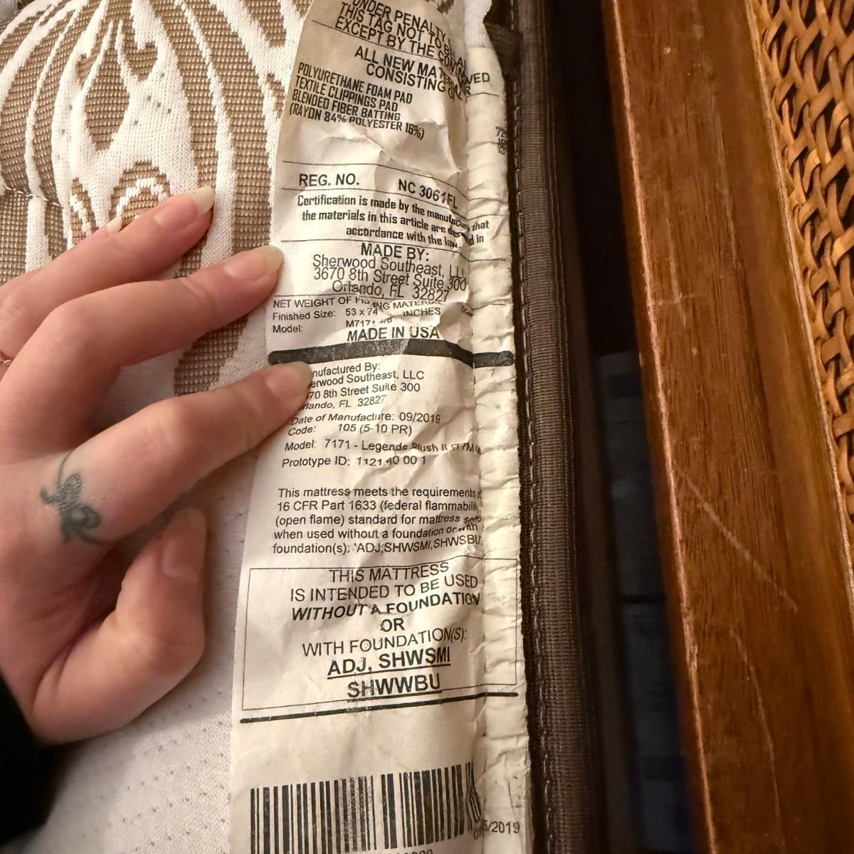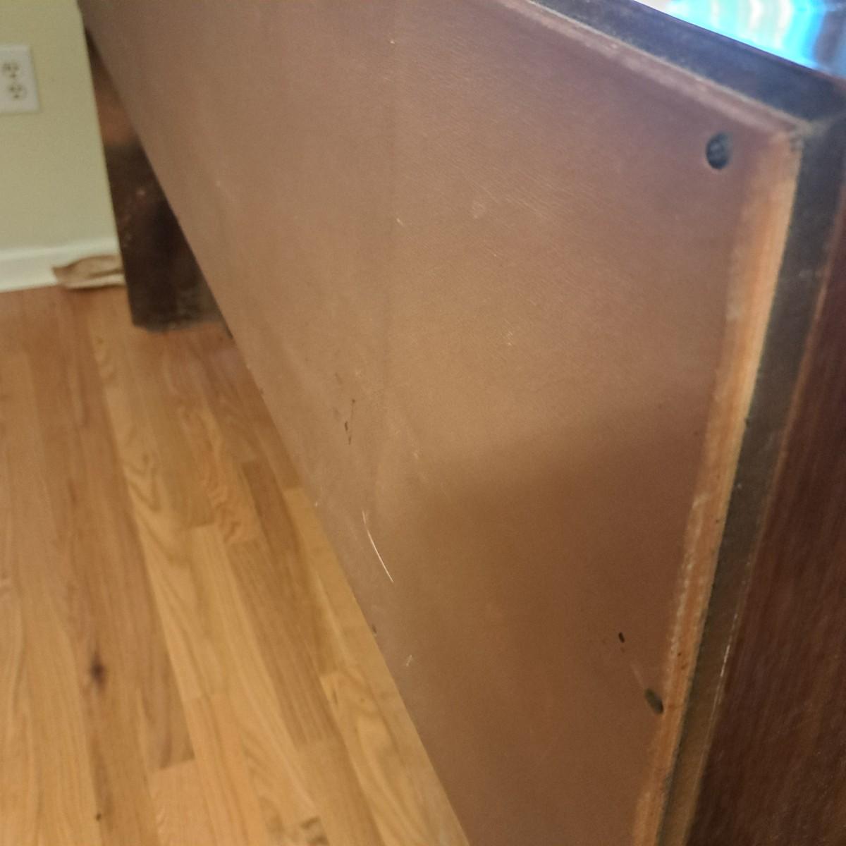 This lot contains a groovy mid-century modern full bed frame. The frame itself is made out of wood and the headboard has a shelf with a sliding wicker screen. Top of headboard has a few scratches and surface scuffs and a small area of veneer is peeling from the side panel as shown. The frame measures 57” x 88” x 36.5”H, headboard and the mattress with box spring sits 25”H. The mattress and box spring are Legends by Babcock and measure 53” x 74” and has 18”H with box spring. There does not appear to be a need for tools to break down the frame, it seems to pop in and out of itself. See pictures for details. The mattress is available to the winning bidder if desired, but the winning bidder is not required to take it. Local pick up only. Winning bidder must bring assistance to help move and load this item due to its weight and/or size.