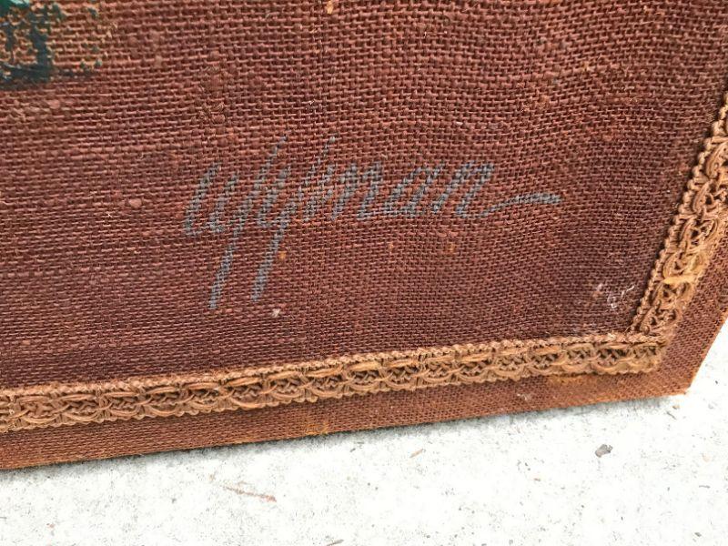 Titled-Return to Maracaibo. The textured brush strokes emphasize certain areas to add character to the piece. Signed oil painting on burlap by artist Wyman. 42 X 54 X 3 stretched over wood support frame. All items SOLD AS IS, AS SHOWN and subject to reserve bid. Unsold items will be relisted. Pick-Up only on Wednesday May 29th between 5-7 PM. Please read Shipping Terms