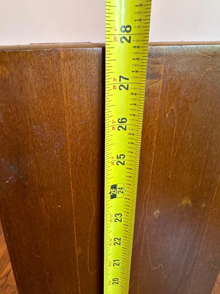 26.25 long x 28” tall x 8” deep.