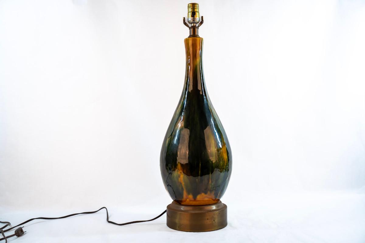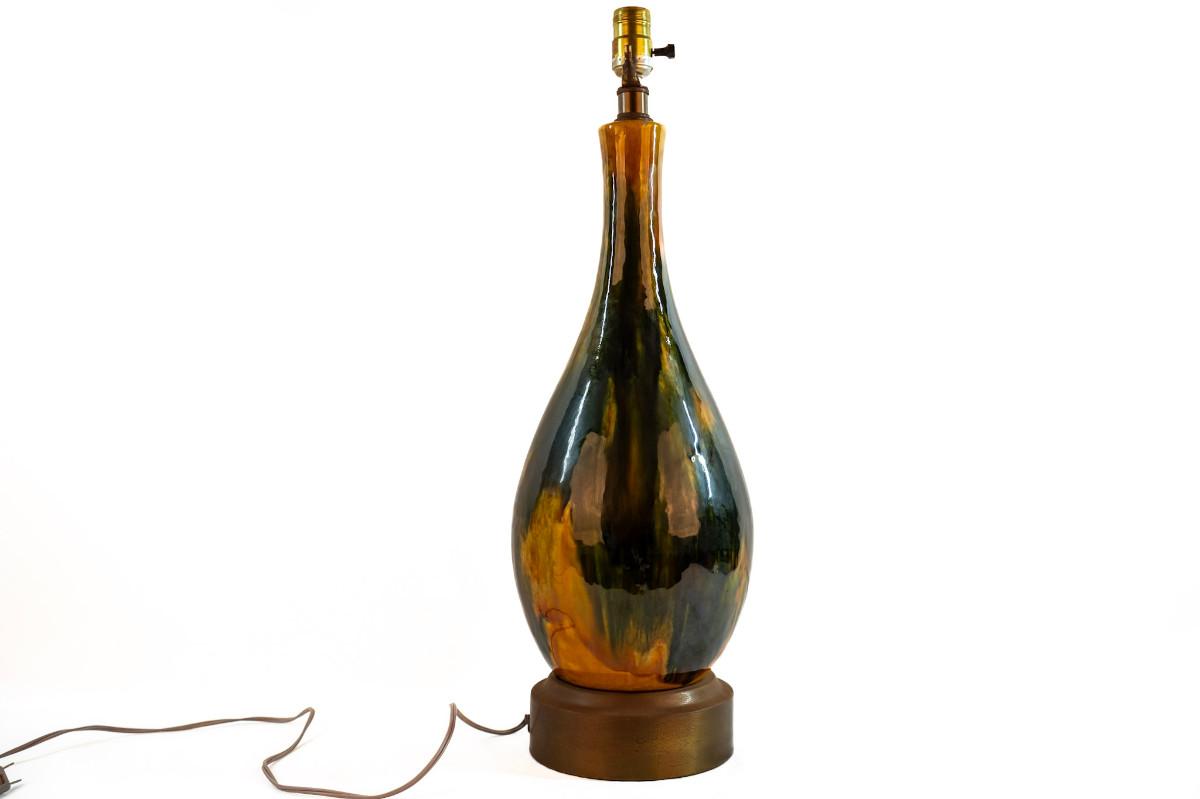 Mid-Century Modern drip glaze pottery table lamp MCM lighting