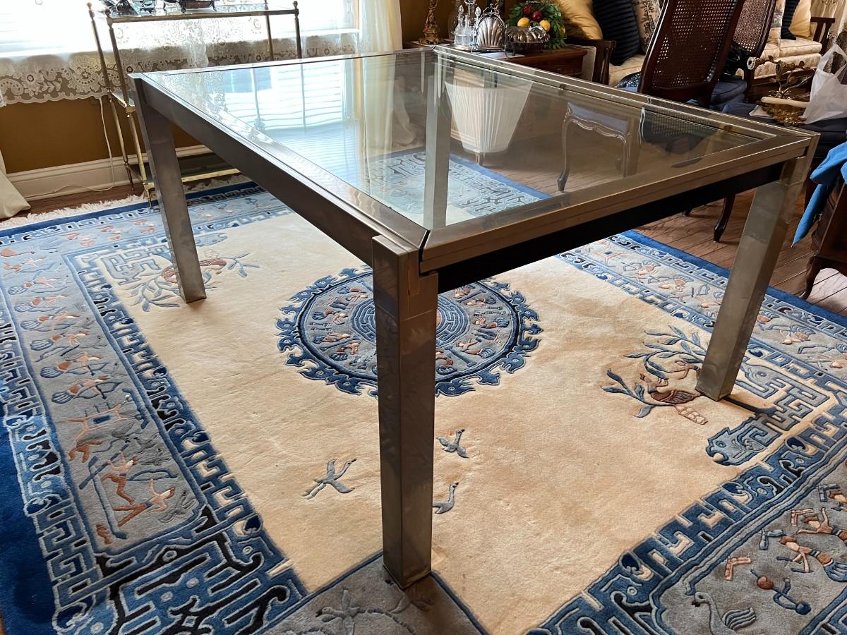 Mid-Century Modern Extendible Glass and Chrome Dining Table
