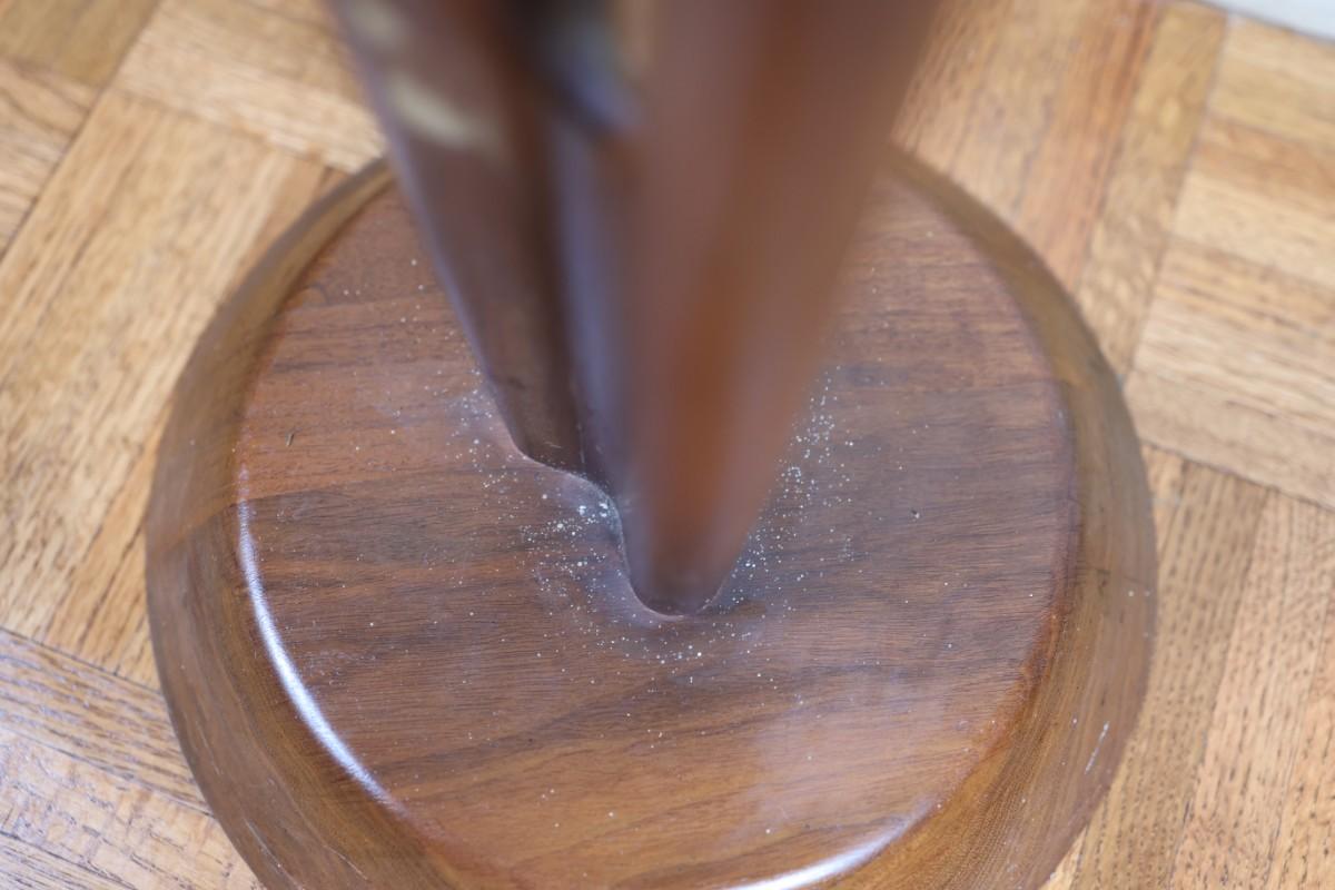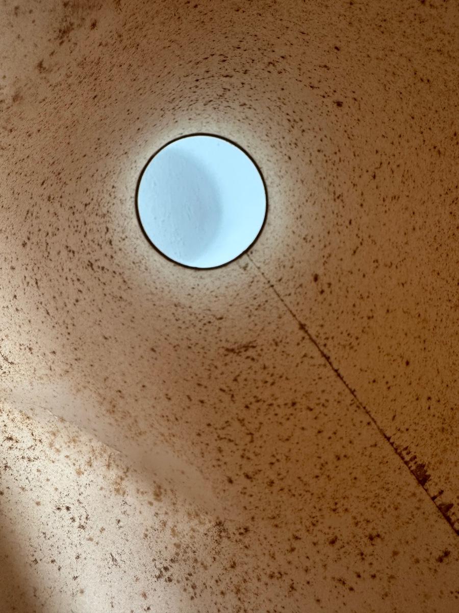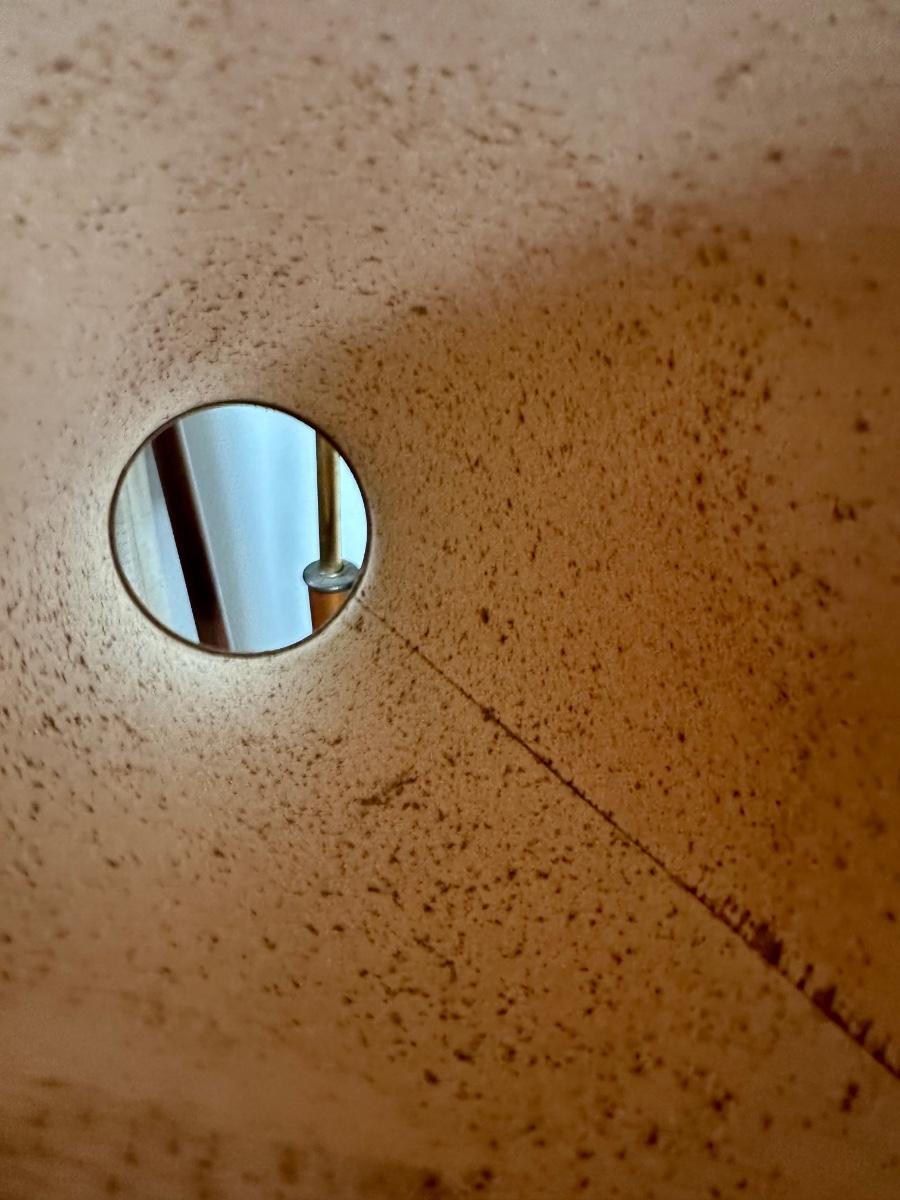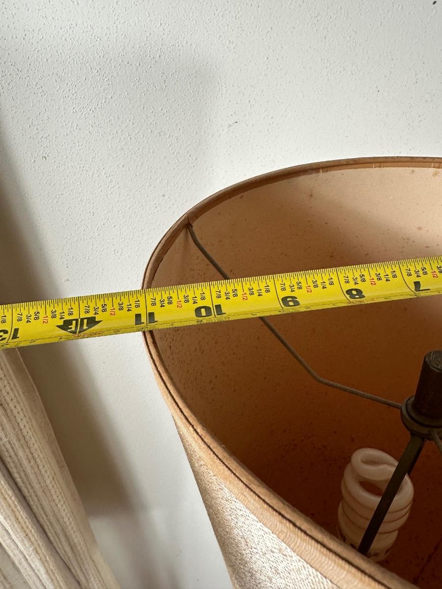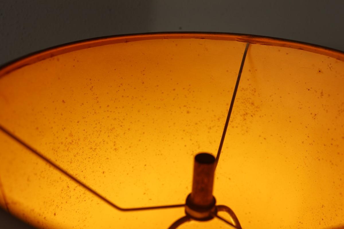 The shade does have denting where it sits on the shade. The inner shade has spots from age, see pictures.