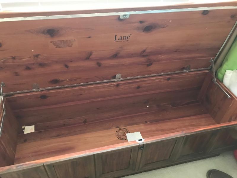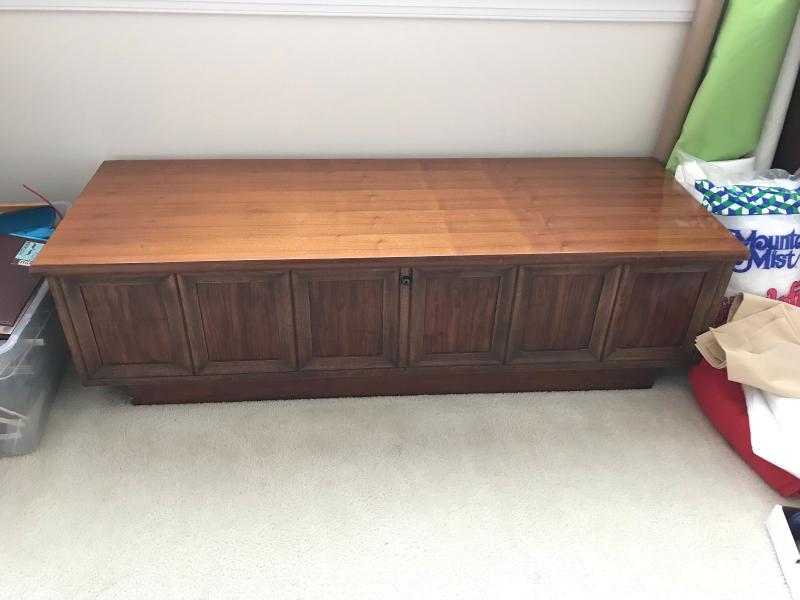 Very nice mid-century walnut cedar lined blanket chest by Lane. Low profile with paneled front. 19" x 54" x 15" H