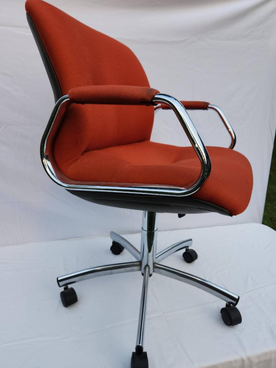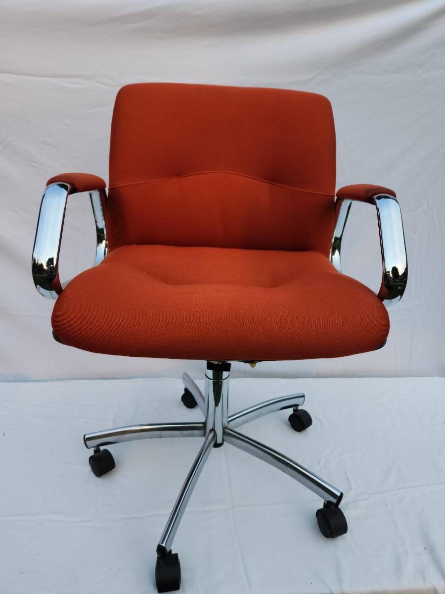 Mid-Century Modern Orange Upholstered Office Chair With Chrome Frame