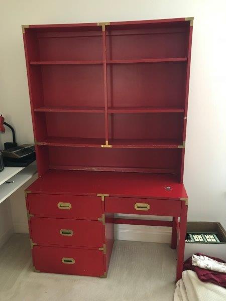 Lot 73-Mid-Century Modern Red Campaign Style Desk with Bookcase Top