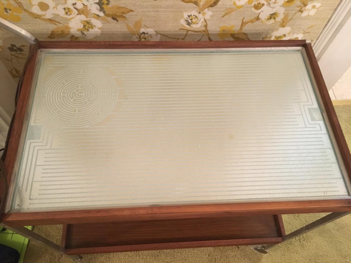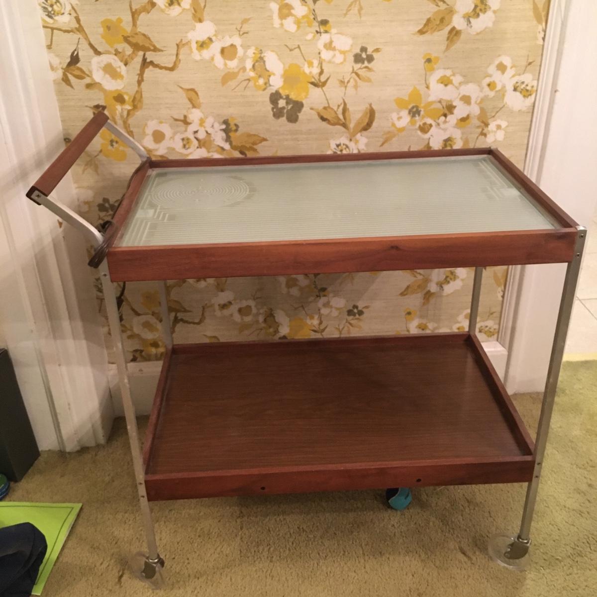 Cart on wheels. Plug it in and it keeps food warm. Throw a tablecloth on it and it can be a tea cart or beverage tray.