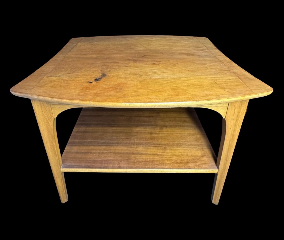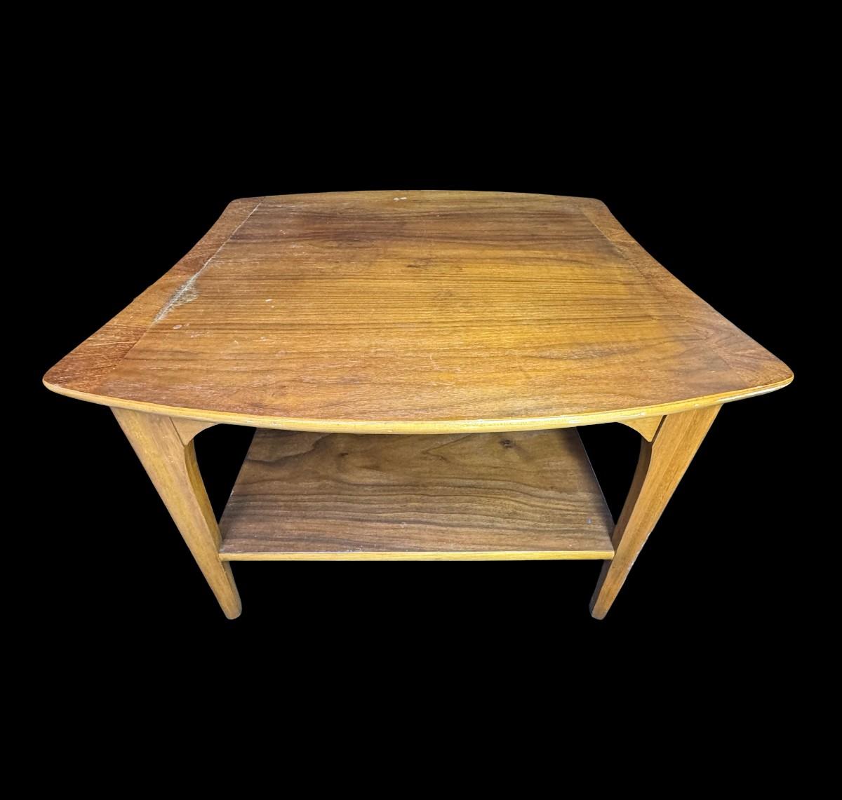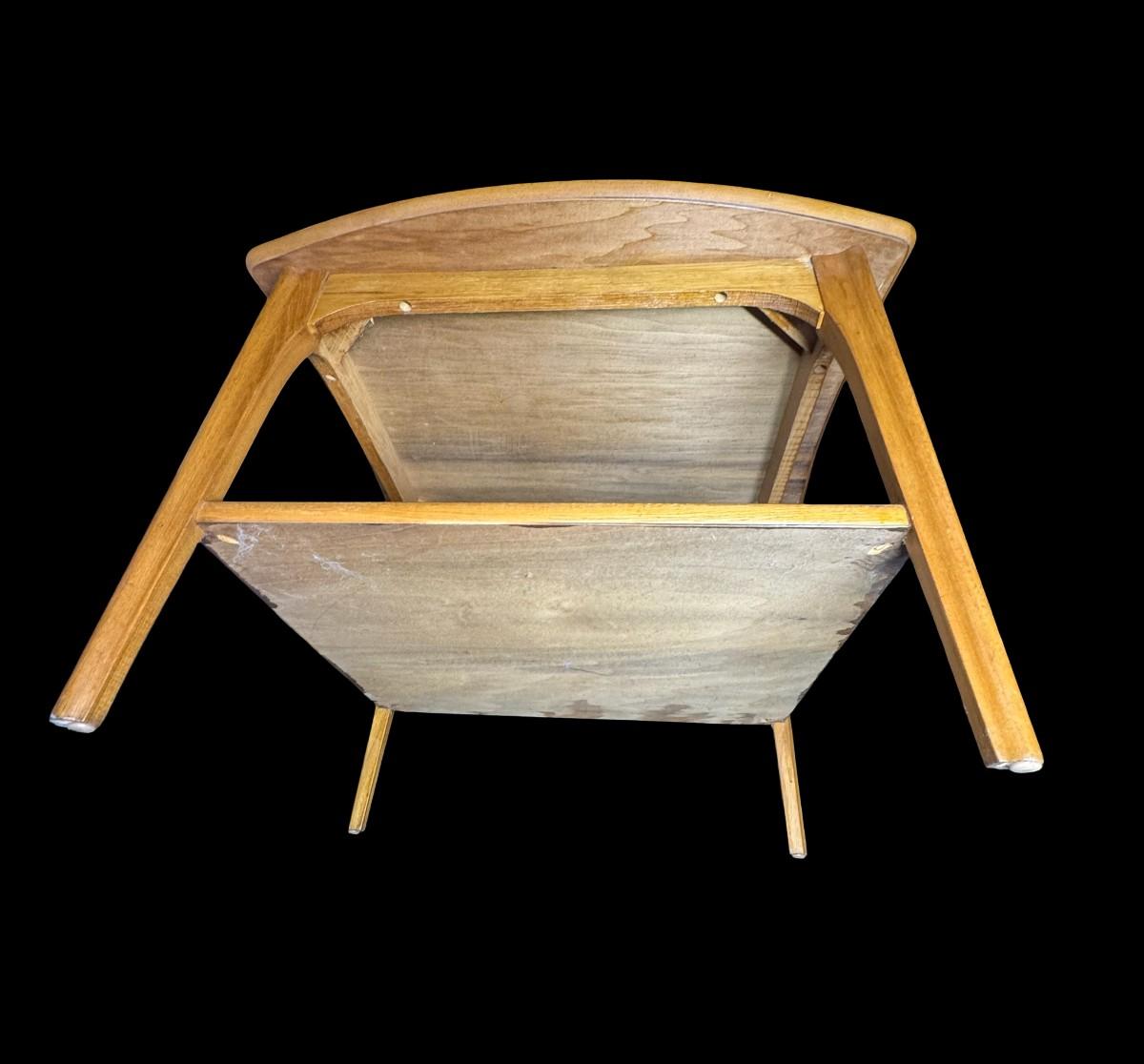 These end tables are solidly constructed. The maker is unknown, but most likely Danish. There is age related wear, including some stains on the surface of each. They may have been refinished at some point. Measurement: 27.5”W x 26”L x 20”H (each). [SR]
