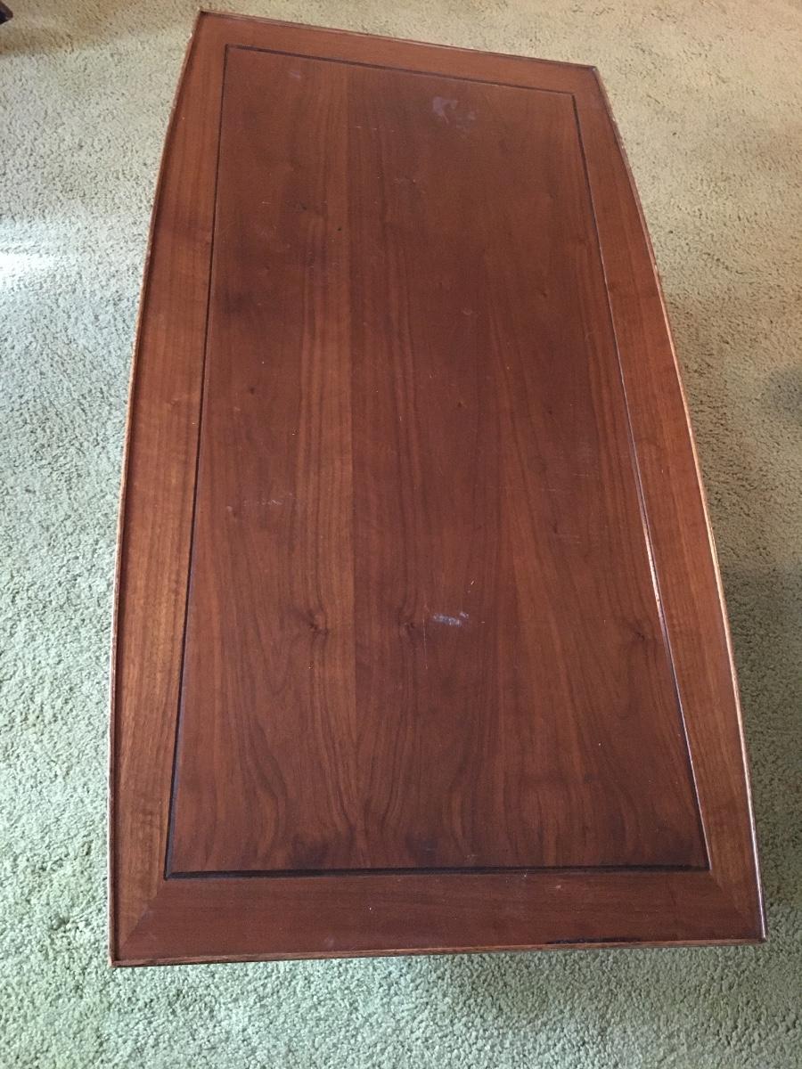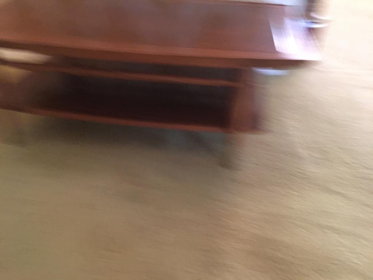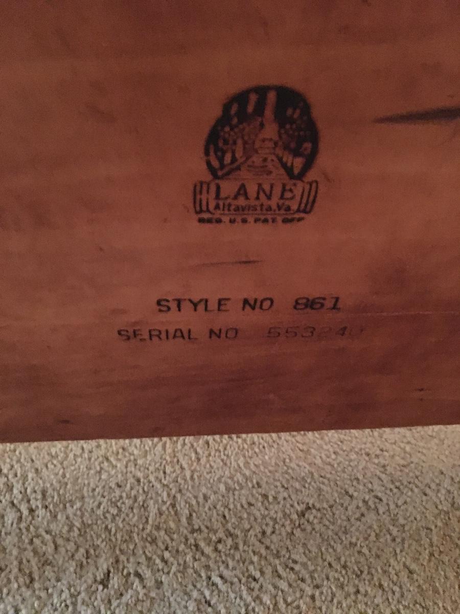 This vintage Lane Furniture coffee table features classic mid-century design, coupling a two-tier construction, tapered legs, added stretchers for support, and a unique wedge style table top. Does have war as shown in photos.