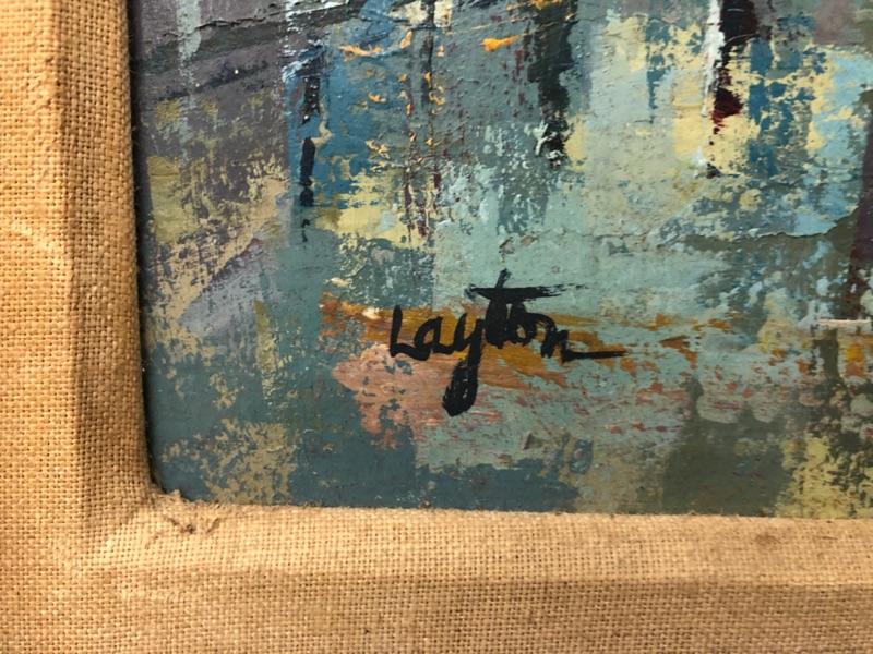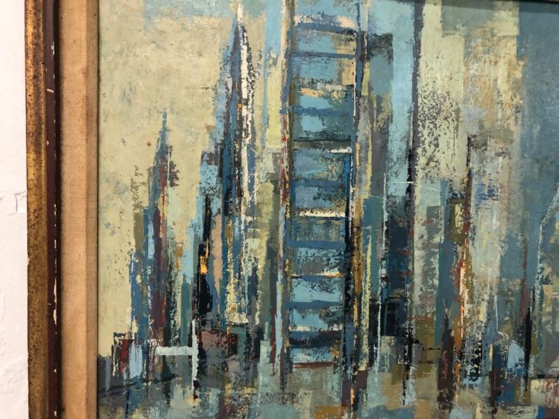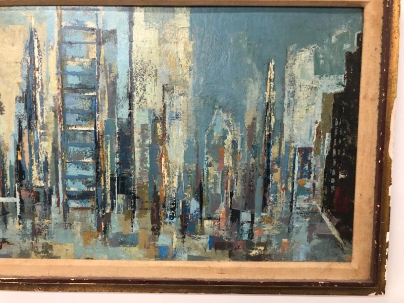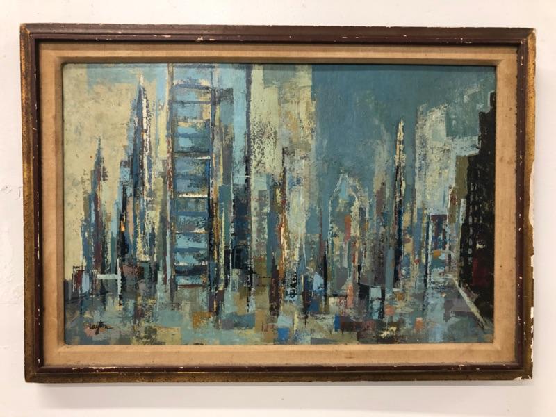 Mid-Century Modernist Painting of New York City Margaret Layton. 14.5" H x 22" L