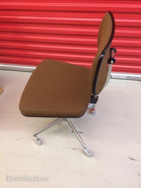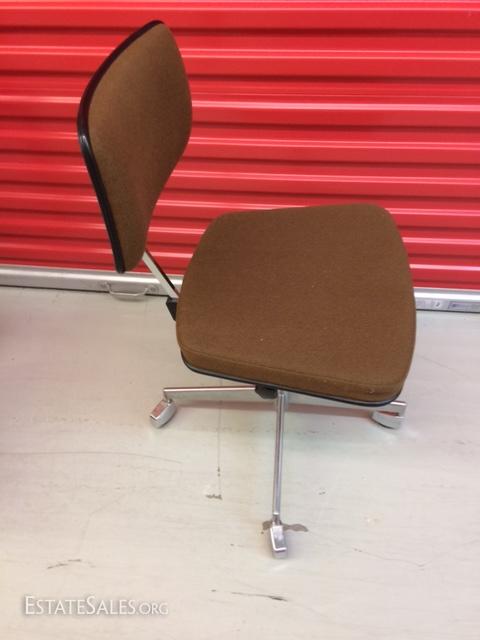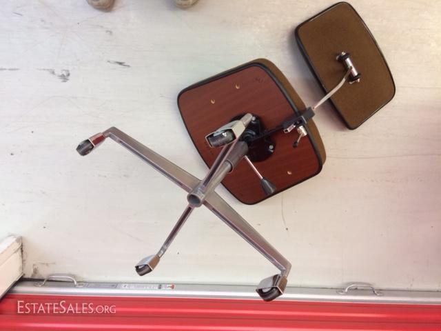 A wonderful 1960s Labofa Danish rolling office chair in orange tweed. The chrome is in wonderful condition and is easy to move because the well engineered wheels. A fun and playful chair for your office or home. Marked.