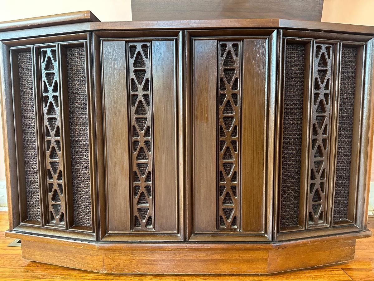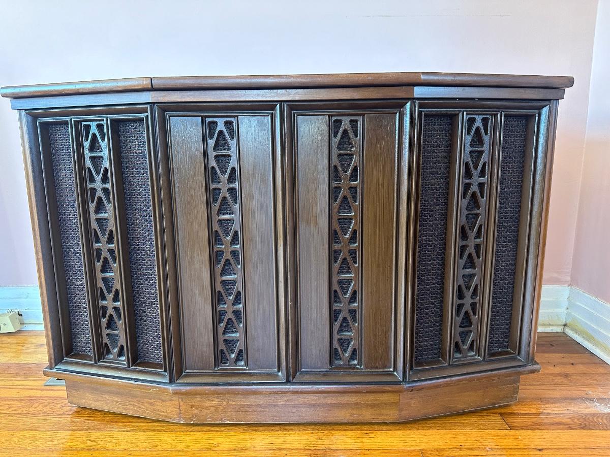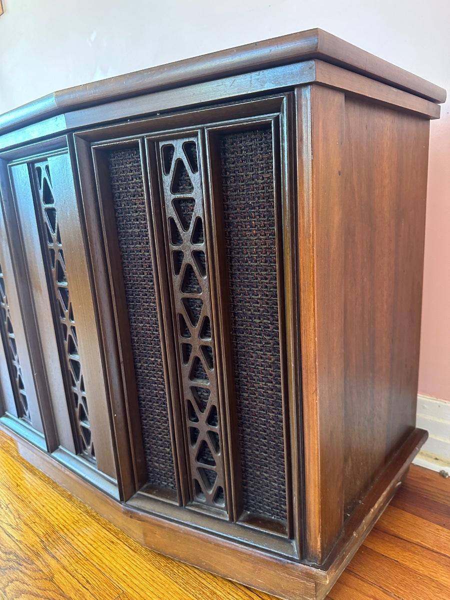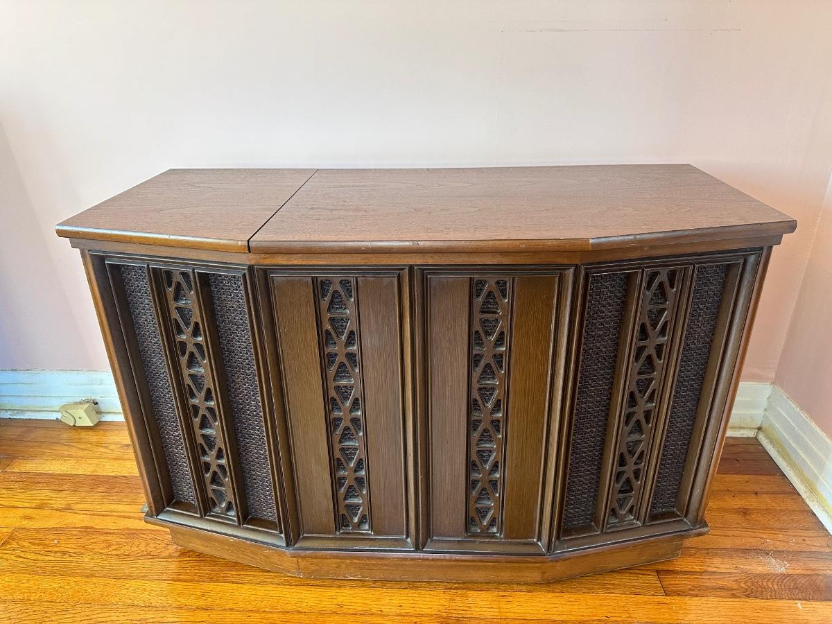 Great furniture piece if not used for music. It is in great condition! Radio worked great but will need new speakers. Record player is missing needle and probably will need attention.