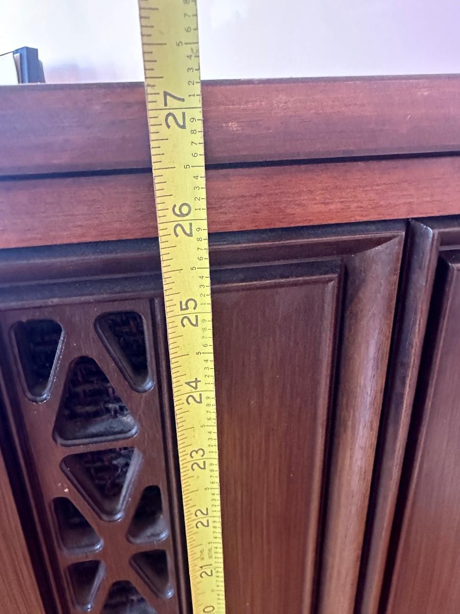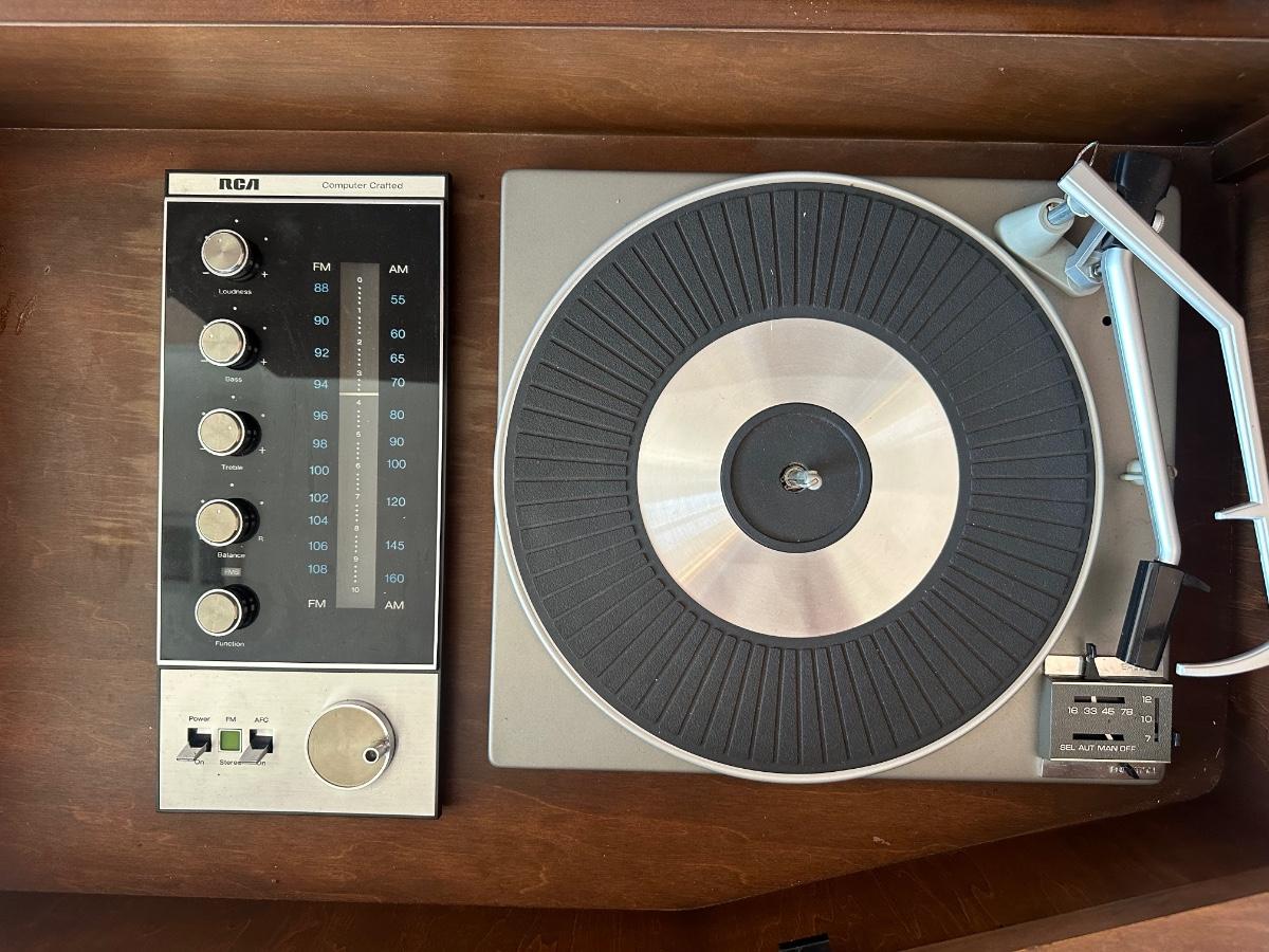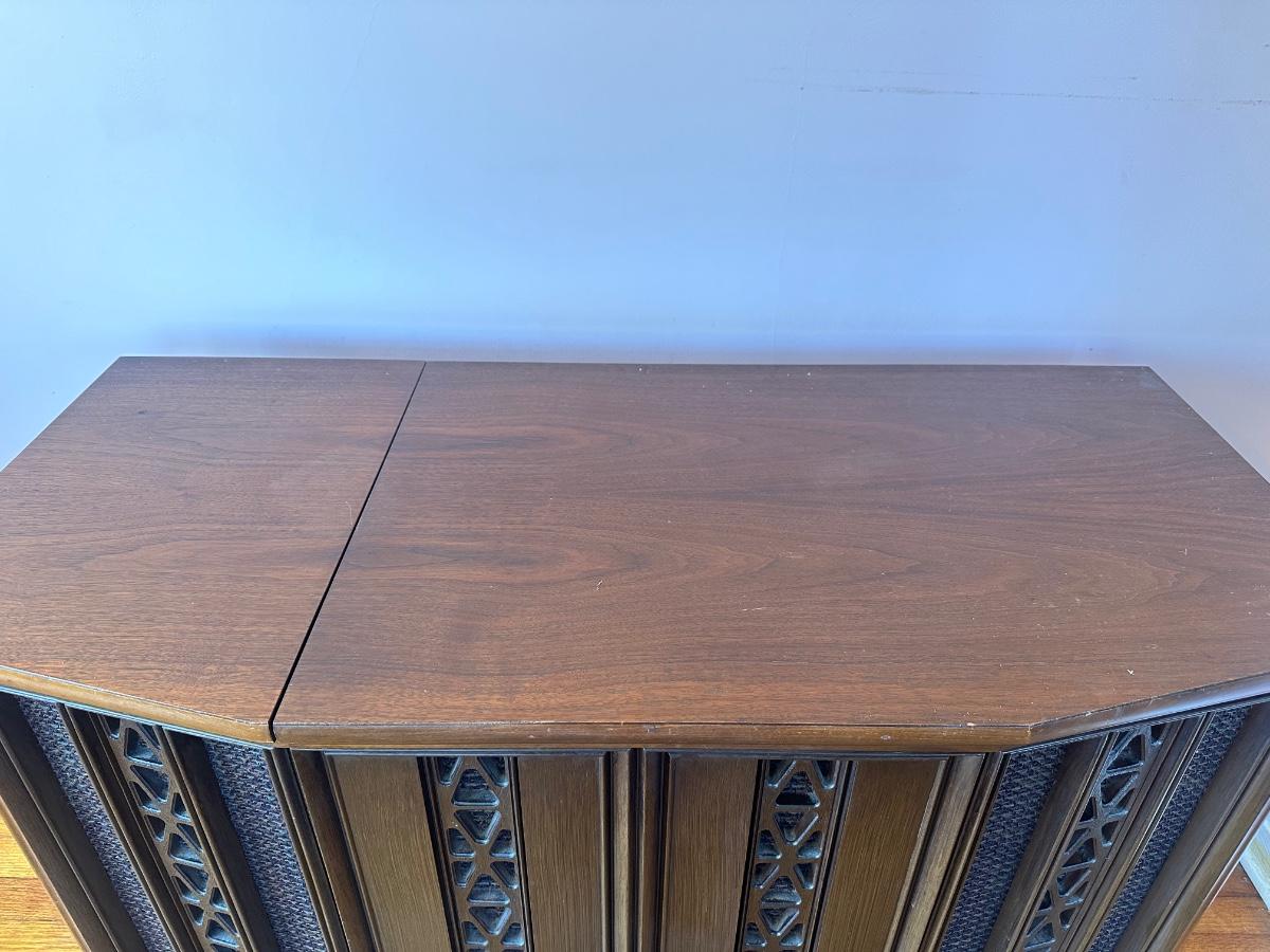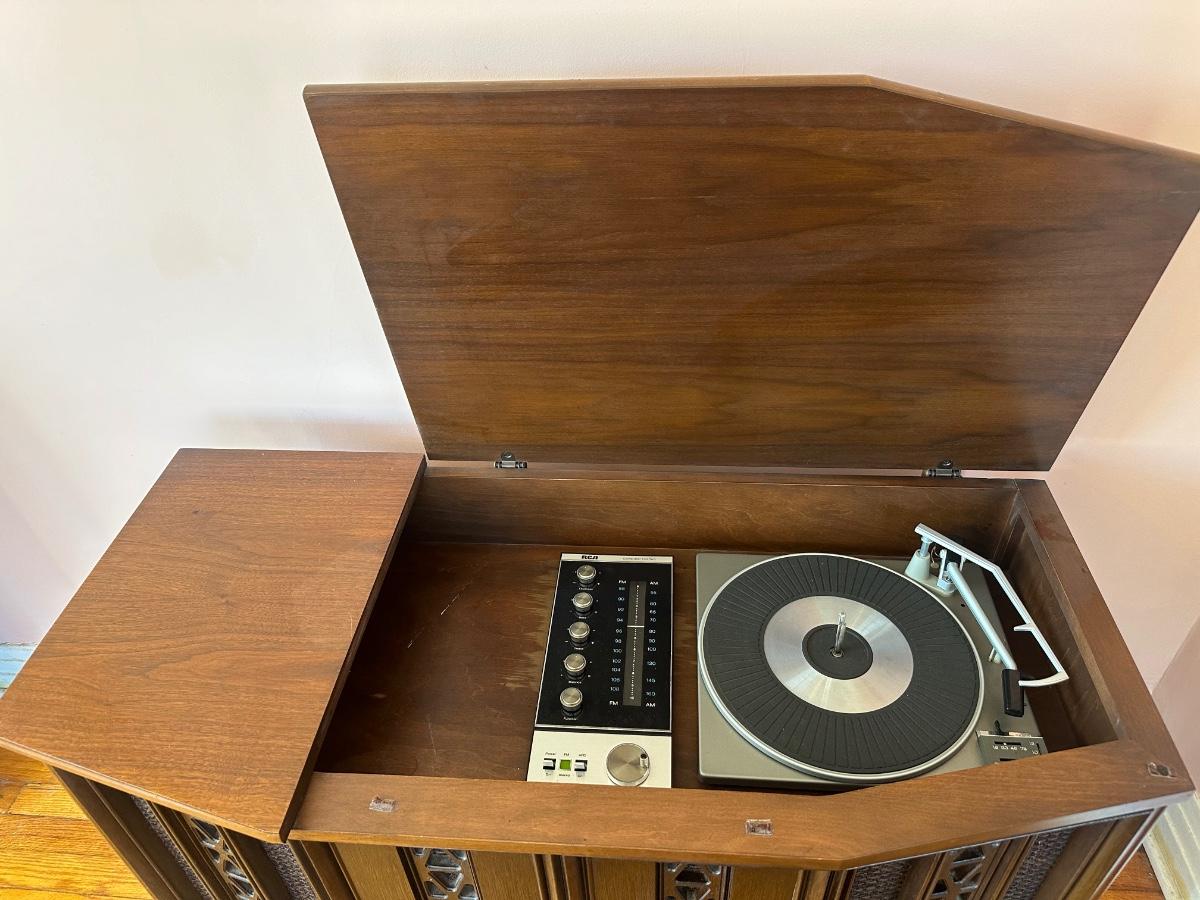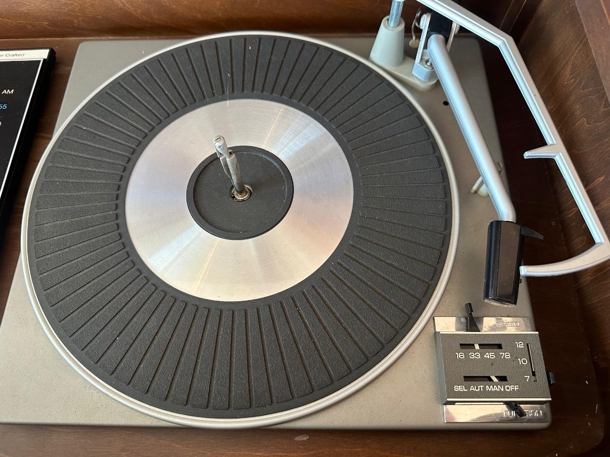 Great furniture piece if not used for music. It is in great condition! Radio worked great but will need new speakers. Record player is missing needle and probably will need attention.