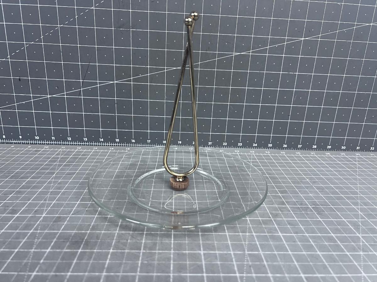 Mid-Century Serving Tray with Gold Toned Handled.
