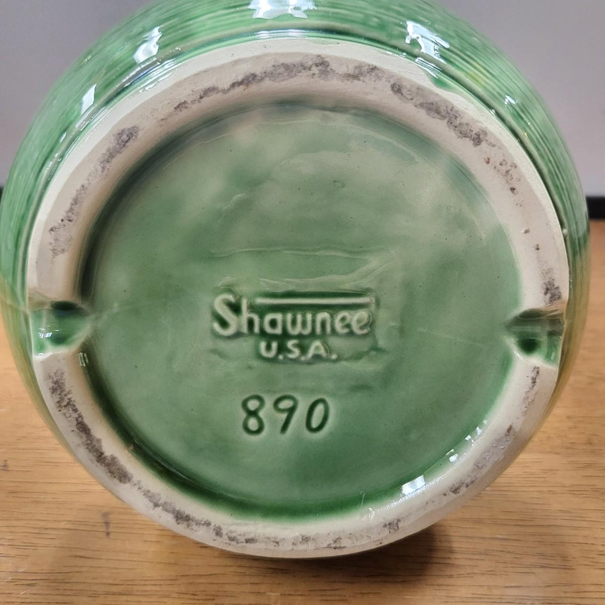 Excellent Shawnee USA 890 decorative vase. Interesting shape and pattern. Measures 9.5" tall x 8" wide x 4" deep.
