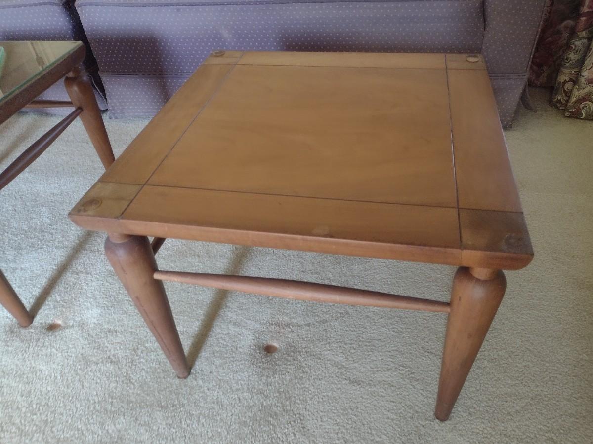 Mid-Century Solid Wood Henredon End Table Company Choice A has a removable glass top.