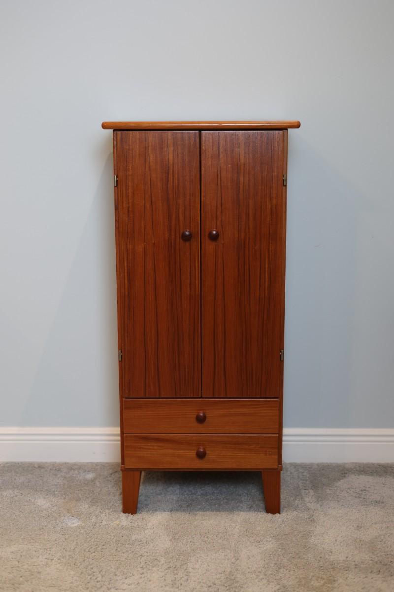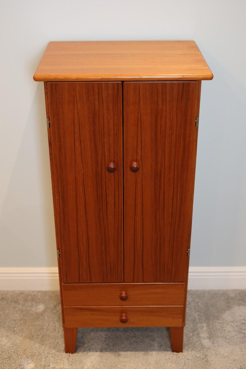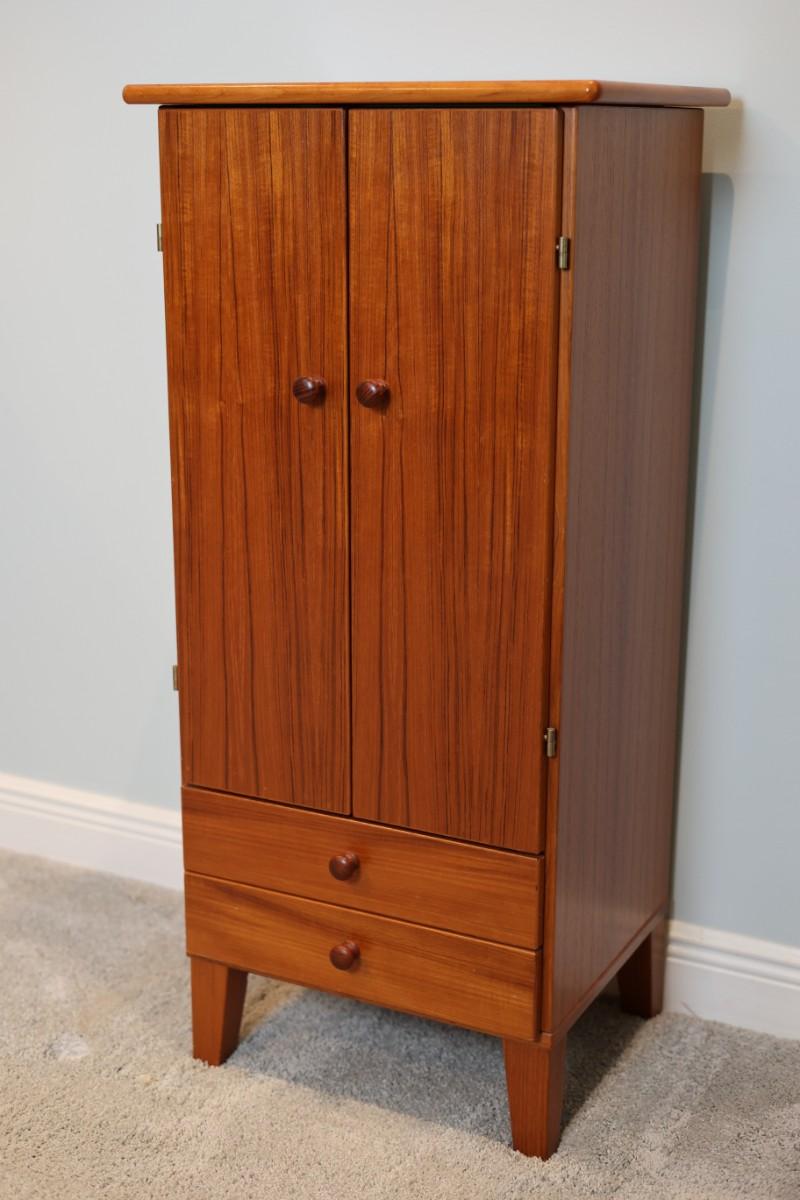 Mid-Century Style Wooden Jewelry Cabinet with Mirror
