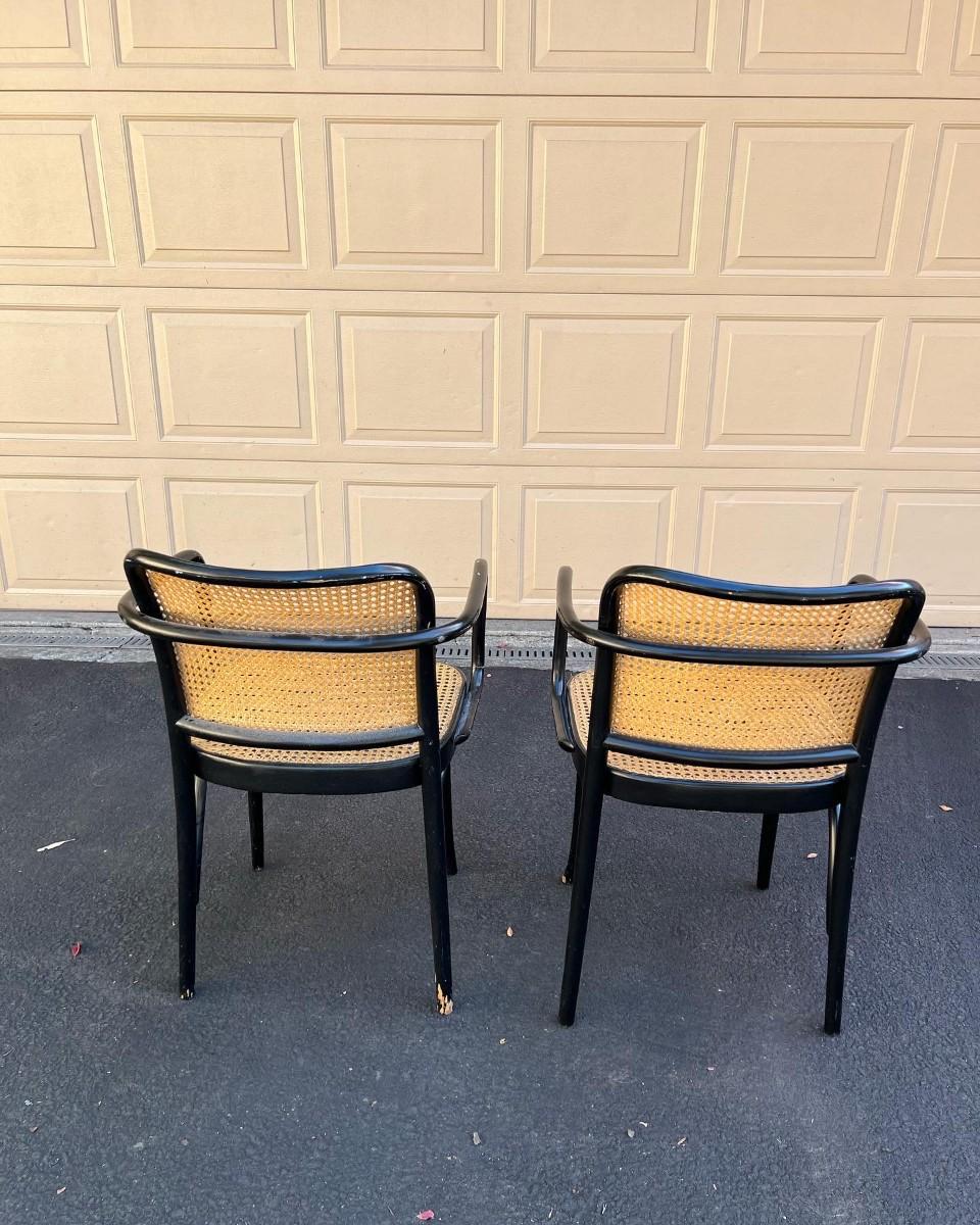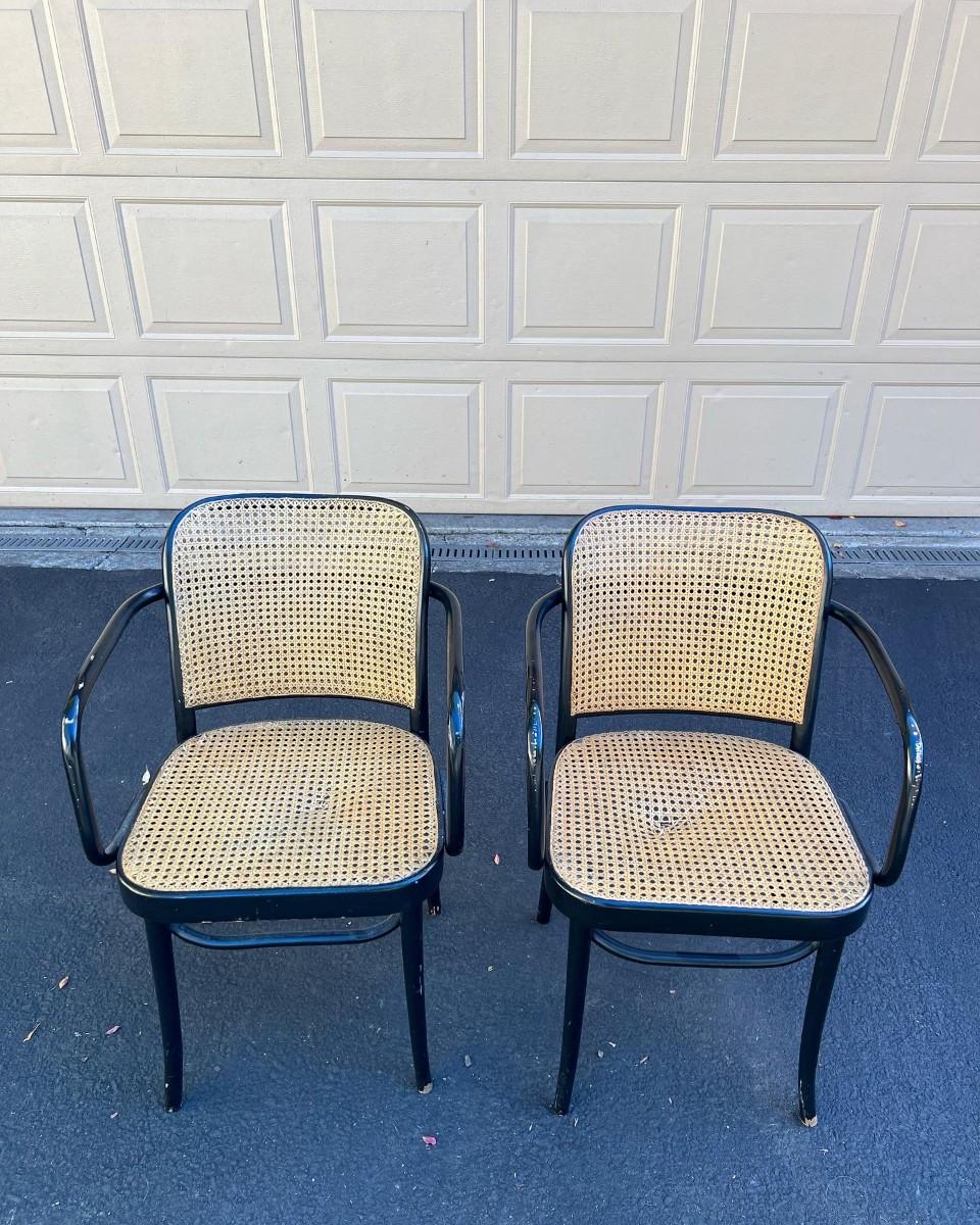 The chairs do need some restoration on the lacquer and woven seats. Please see pics for the condition of the chairs.