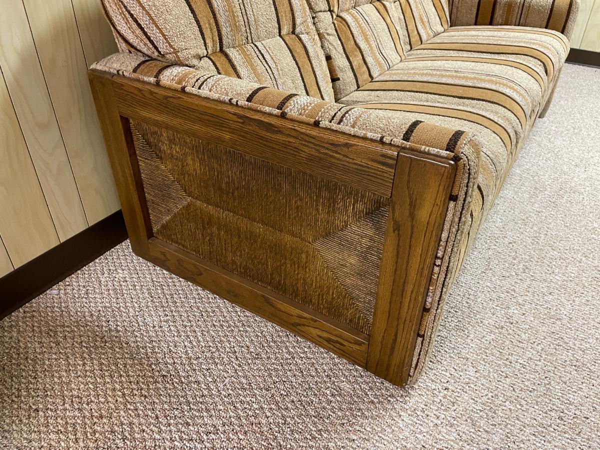 Mid-Century Upholstered Striped Sofa with Wooden Sides