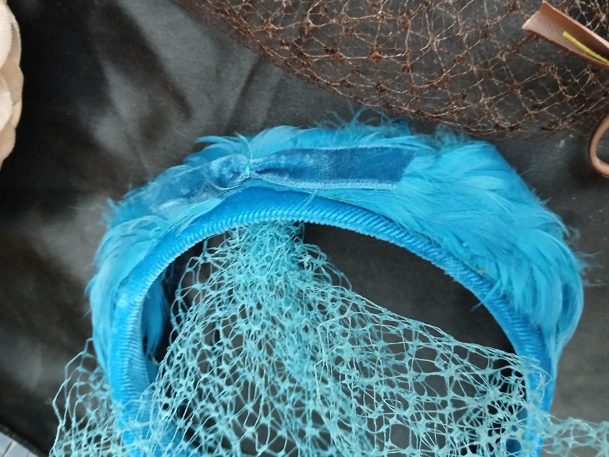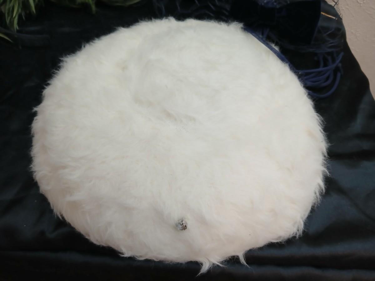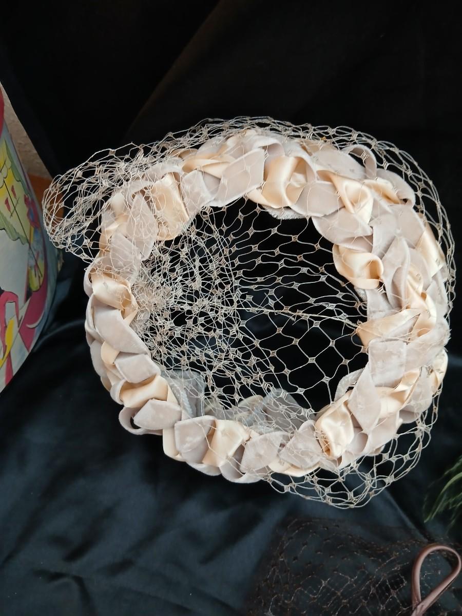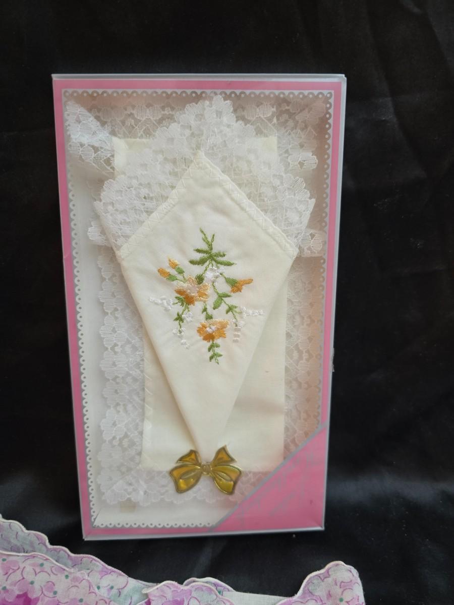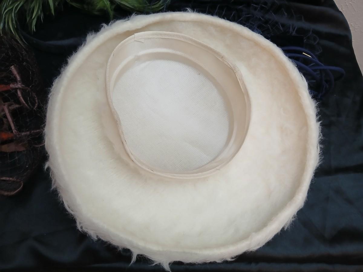 Mid-Century Vintage Hat Box with an assortment of Women's Collectible hats / veils & Vintage linen handkerchiefs.