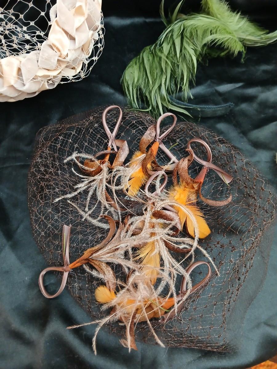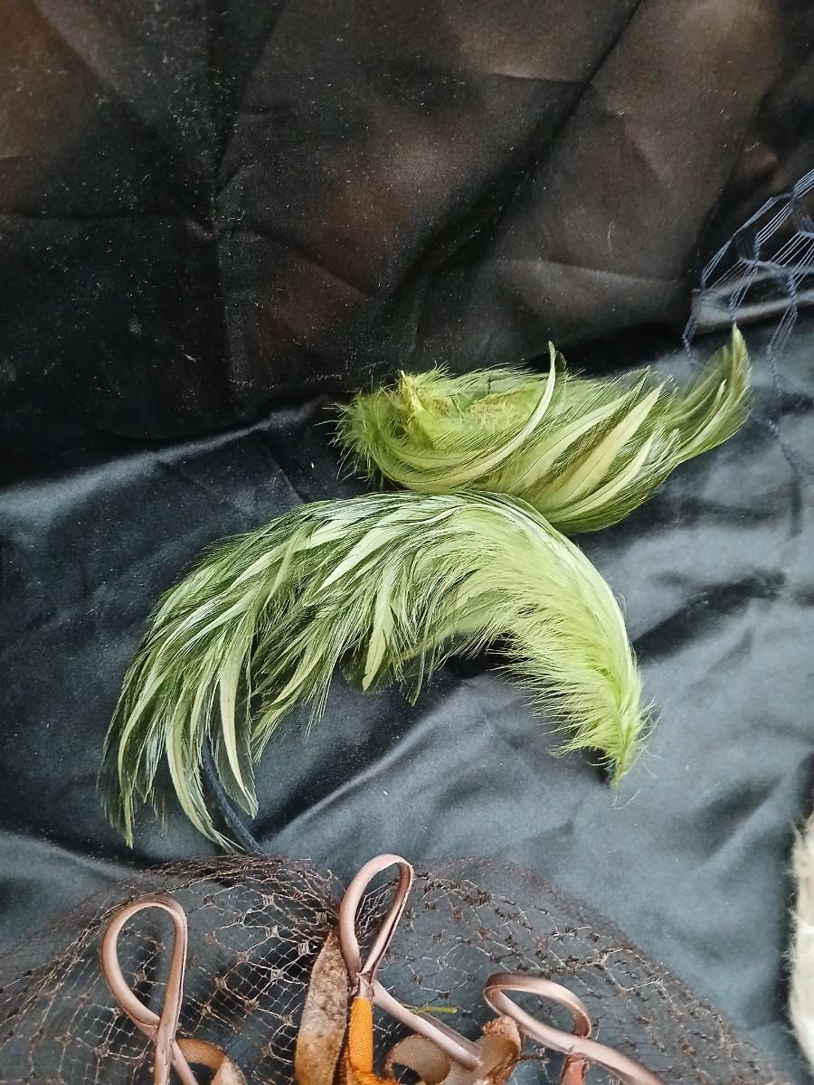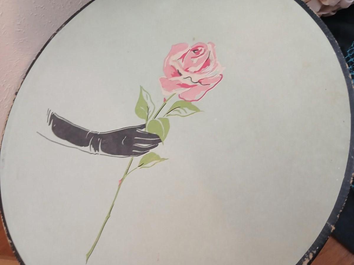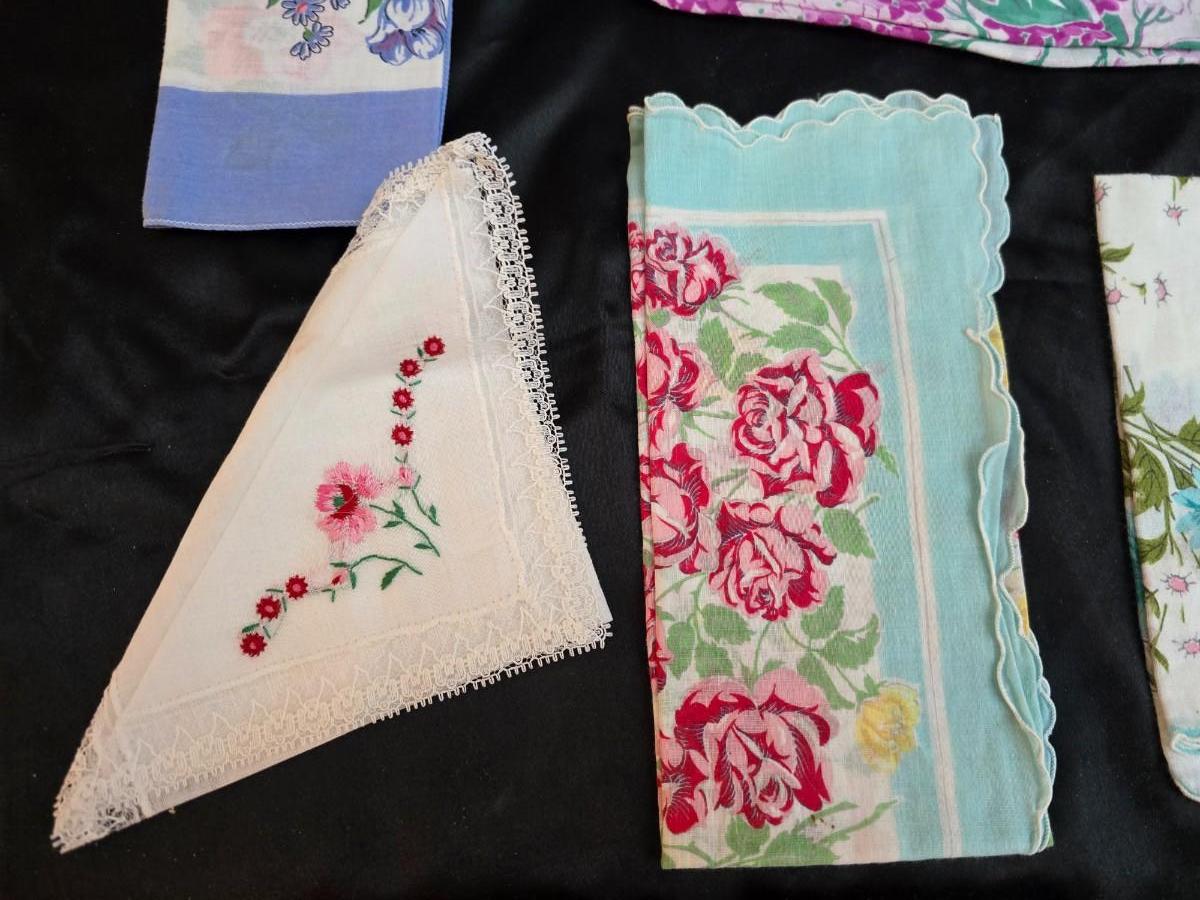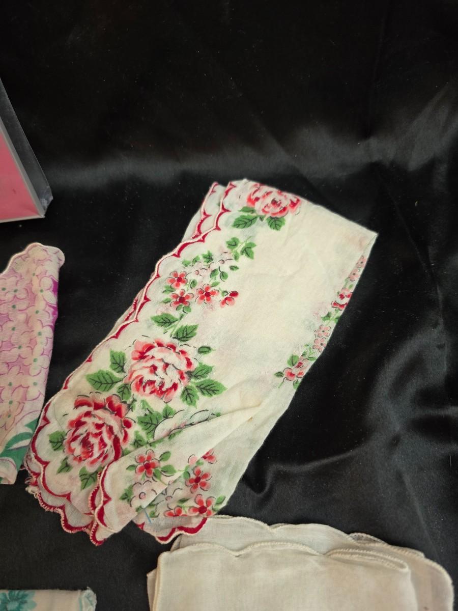 Mid-Century Vintage Hat Box with an assortment of Women's Collectible hats / veils & Vintage linen handkerchiefs.