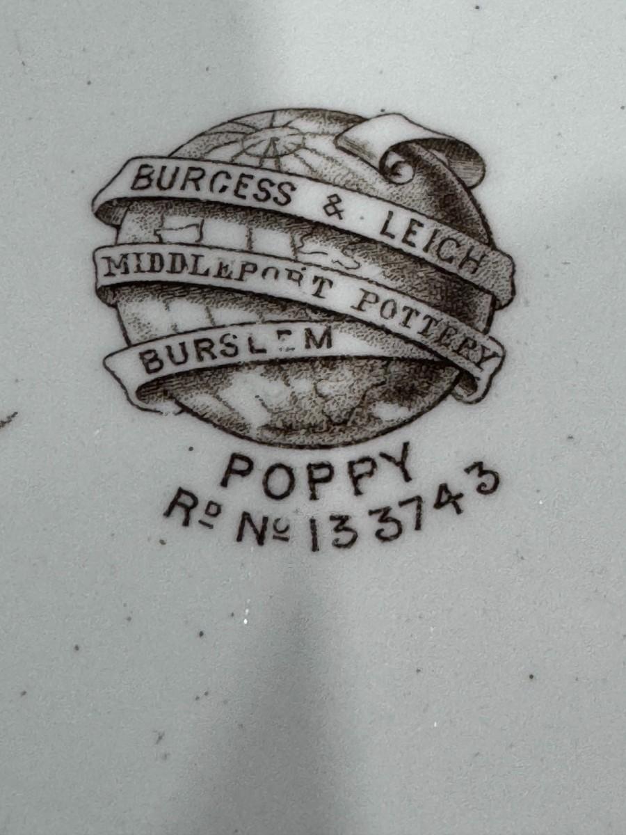 This mark indicates that the piece is an authentic antique from the late 19th century, featuring the distinctive Poppy pattern from Burgess & Leigh's early period at Middleport Pottery.
