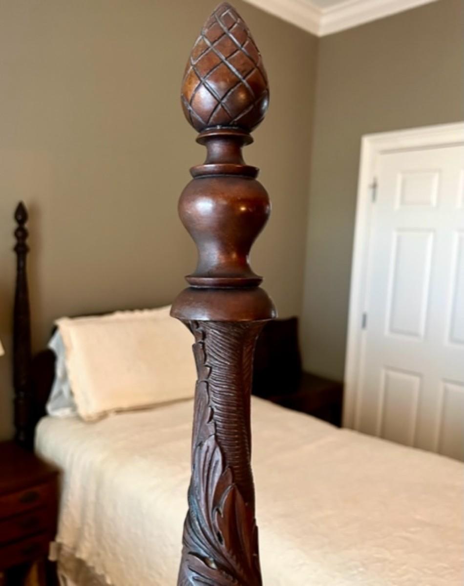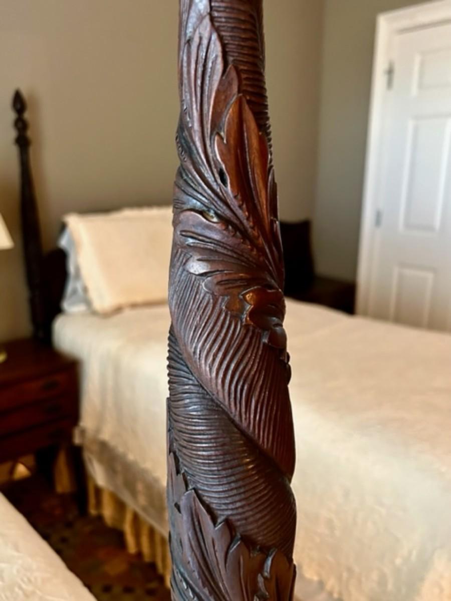Pair of American Classical Carved Mahogany Four-Poster Twin Beds